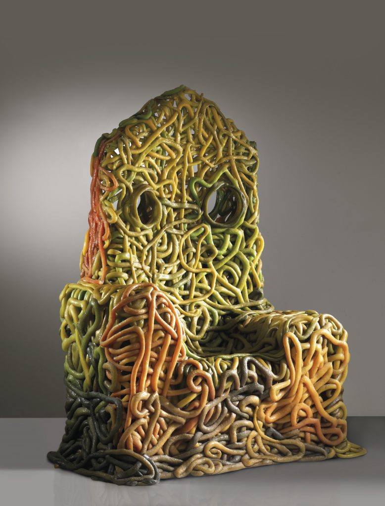Proseguiamo la lettura del catalogo. C’è Gaetano Pesce a rubare la scena, con creazioni fuori scala come Trono Modello Senza Fine Unica in PVC policromo nei toni del verde, beige e rosso (stima: € 10.000-15.000) e Trono Modello Senza Fine in poliuretano estruso nei toni del nero (stima: € 5000-7000). «Veri e propri pezzi unici che fanno della matericità la loro struttura», li definisce la maison.