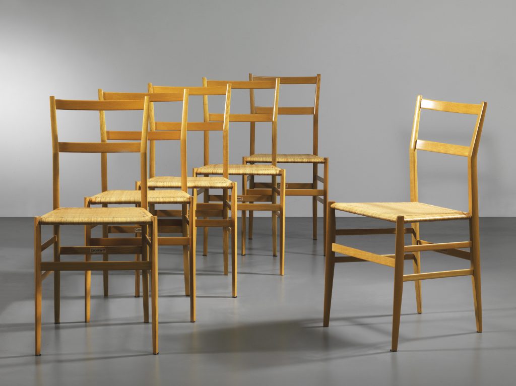 Presente Gio Ponti, con rari arredi come la poltrona con struttura in legno imbottita e rivestita in seta (stima: € 20.000-30.000) e la scrivania in legno con dettagli in metallo (stima: € 3000-5000), a cui si affiancano sei sedie provenienti dalla Residenza Contini Bonacossi Di Villa Vittoria in radica di noce con dettagli in ottone e seduta rivestita in velluto nei toni del marrone. «Dall’impiallacciatura che riveste la struttura al lungo puntale in ottone delle zampe anteriori», spiegano da Pandolfini, «questo gruppo di sei sedie, dal disegno semplice ma allo stesso tempo sinuoso ed elegante, sono una realizzazione di qualità eccezionale. Una testimonianza del passaggio dell’arredo dal classico alla modernità, attraverso l’opera della voce più eminente del secolo». La stima, qui, è di € 18.000-23.000.