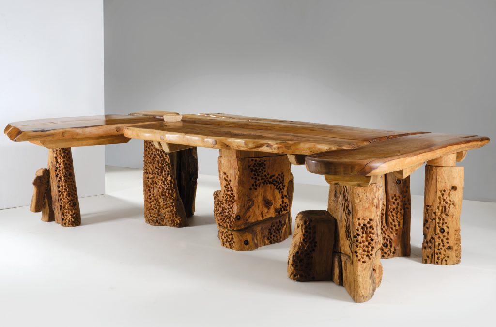 Sono tanti i protagonisti dell’asta fiorentina, come il caso di Gaetano Pesce e ben due gruppi di tre lampade da parete della serie Canovacci, in vetro, stimati ciascuno € 25.000-35.000. Presente anche Urano Palma, con un grande tavolo-scultura lavorato a mano (€ 10.000-15.000), così come Nerone Ceccarelli, che presenzia con il suo pannello scultoreo con dettagli in metallo, un pezzo unico valutato € 10.000-15.000.