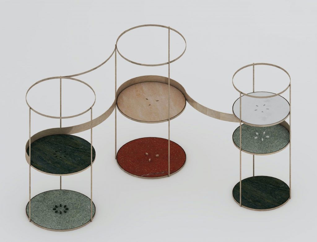 C’è il Trittico di Duccio Grassi, un sistema d’arredo modulare con ripiani circolari, un «giardino in marmo e metallo» con una «decorazione leggera» che «cade pesantemente»; c’è l’installazione luminosa Kepler di Angela Ardisson, una sfera perfetta che rimanda a una missione NASA, con un sistema di soli innesti a incastro, senza alcuna saldatura; e, ancora, lo Studiolo di Maurizio Barberis, un elegantissimo mobile-opera, che al tempo stesso meraviglia e accoglie.