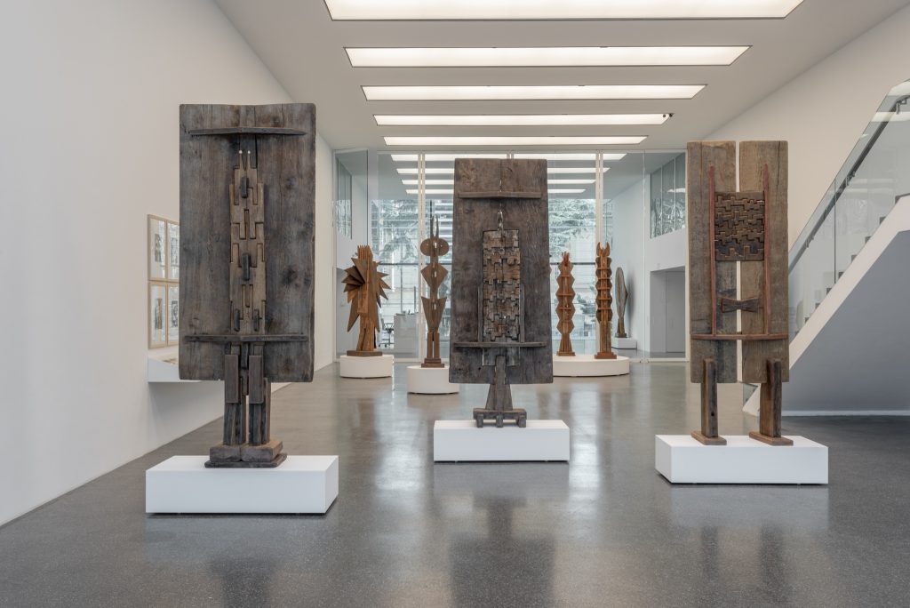 Dall’art brut al futurismo, dal surrealismo alle leggende dolomitiche fino all’arte africana – le influenze che attraversano le enigmatiche creature di Vallazza sono diverse e contrastanti, eppure sanno ricomporsi in un ecclettismo raffinato, pulito, che ha una potenza arcaica e primordiale. Quasi che, in un lungo lavoro di sottrazione, da ogni suggestione e corrente l’artista abbia saputo cogliere l’essenza più pura. Lo stesso fascino emana dalle sculture che abitano e scaldano con i loro legni lo spazio asettico di Museion Passage. Dai loro corpi creste, becchi o corde di misteriosi strumenti musicali sembrano chiamare a sé, come suoni o canti di uccelli primordiali. L’invito è ad avvicinarsi per scoprire il segreto della loro essenza: il tempo. Tarli, fessure, scalfitture e solchi segnano infatti i legni utilizzati da Vallazza. Come l’acqua dei fiumi ha bisogno della vegetazione e di terreni rugosi e imperfetti per incanalarsi e non erompere, così Vallazza riesce a incagliare il flusso del tempo sulla superficie imperfetta delle sue sculture. Una capacità, questa, che rende la sua opera germinativa e più attuale che mai. Fino al 2 giugno 2024.
