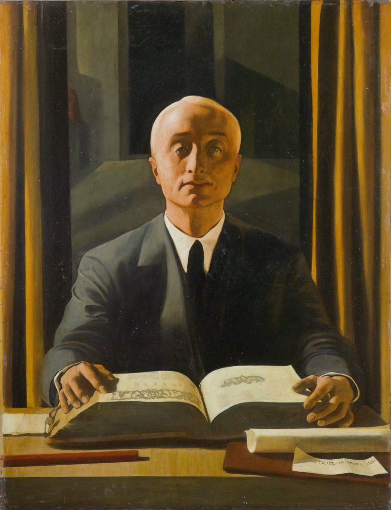 La fortunata stagione degli anni Venti, che vede Casorati alla ribalta nei circoli del mecenatismo e dell’arte italiani, si apre in mostra con la sua opera più celebre: Silvana Cenni. Dipinta nel 1922, la tela, di grande formato e ispirata al Polittico della Misericordia di Piero della Francesca, ritrae una donna immaginaria, che posa per l’artista con fare ieratico e intangibile, seduta in una stanza affacciata sul Monte dei Cappuccini di Torino e con ai piedi pergamene e volumi sigillati, custodi del mistero racchiuso nel dipinto.