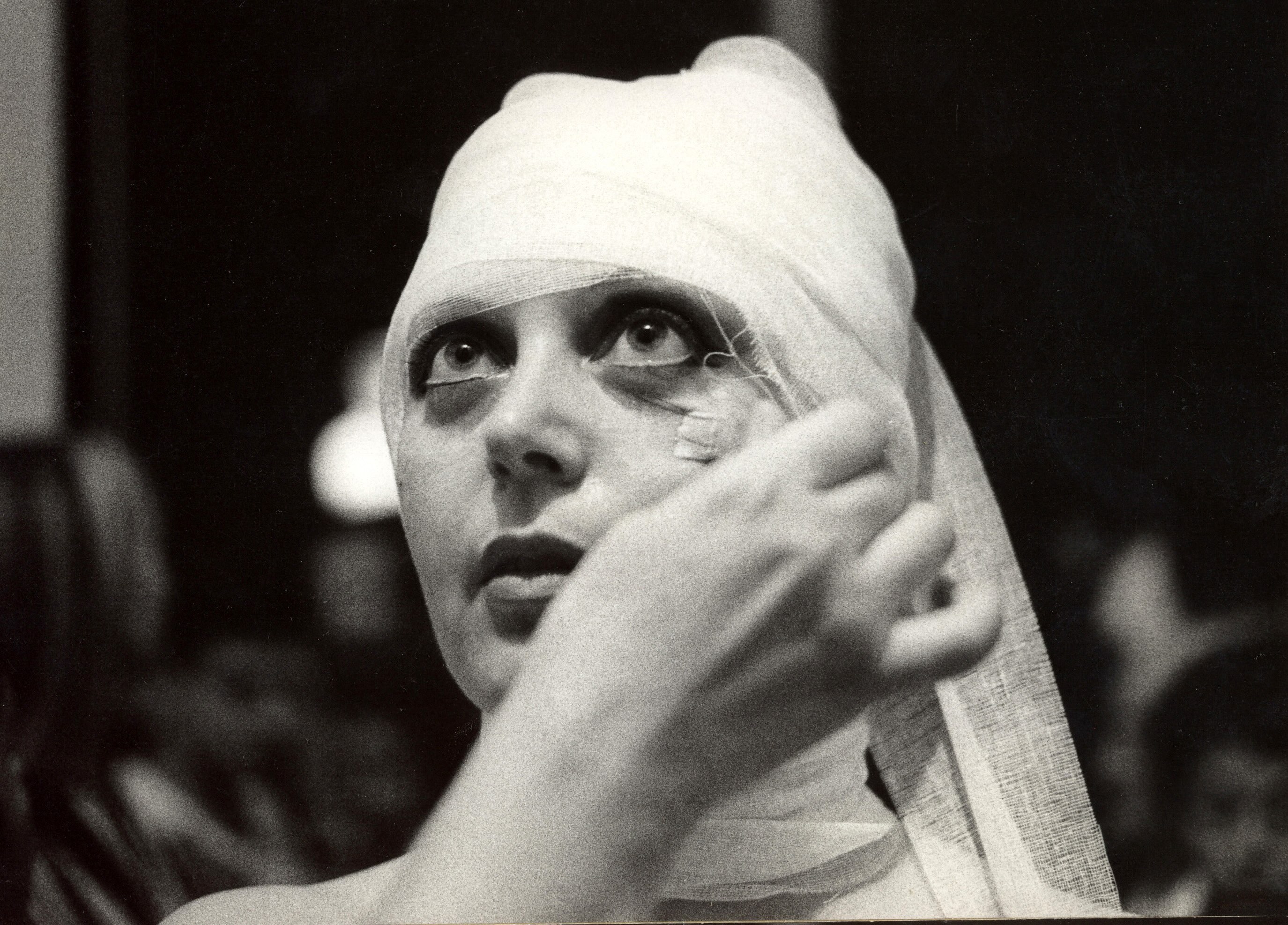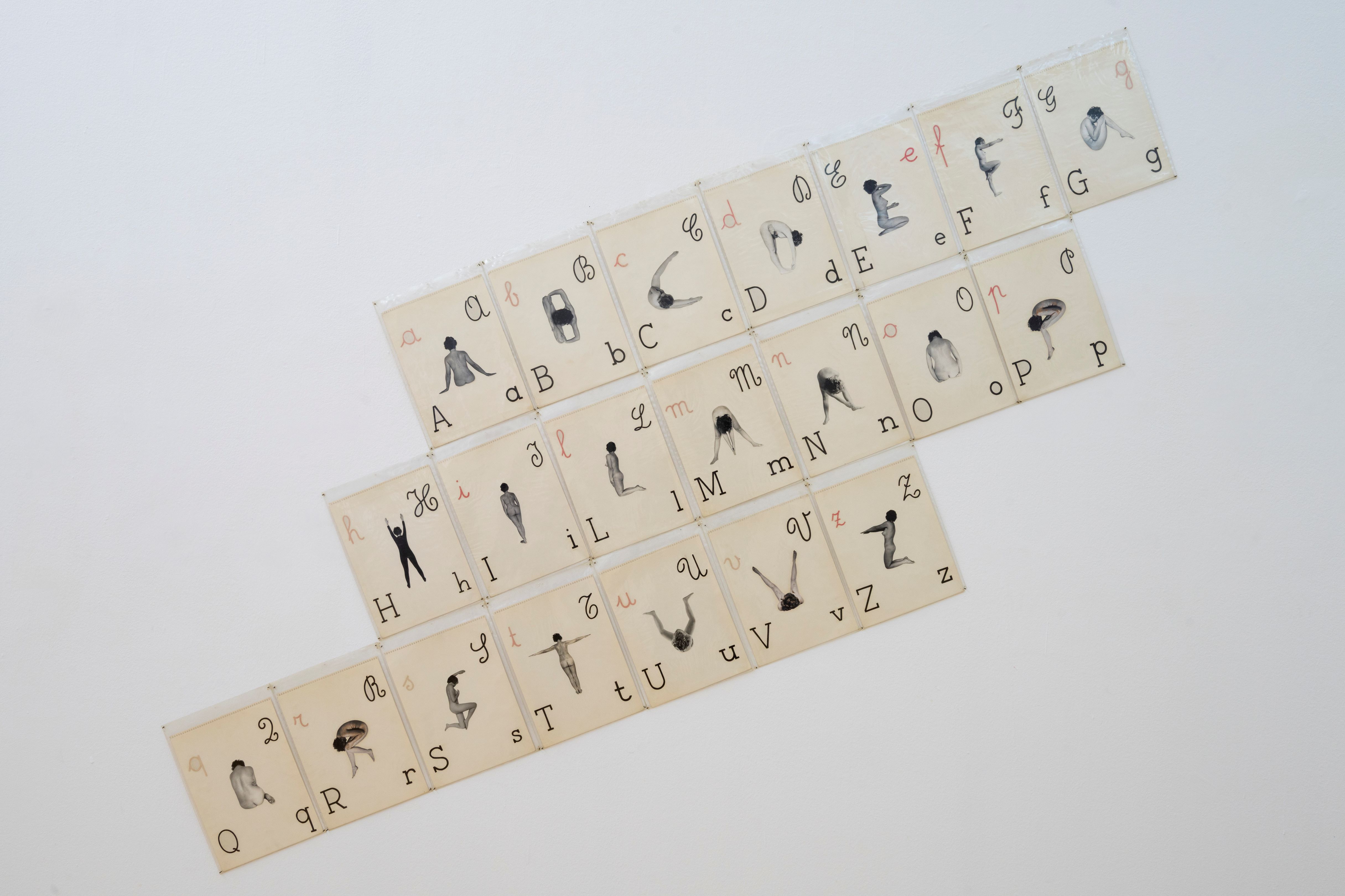 In un tracciato circolare posto al terzo piano del museo, il linguaggio, la voce, il segno e il corpo si spogliano di ogni regola tra i numerosi nuclei dell’artista e sono ricoperti di nuovi significati: dalle sculture in ceramica degli anni Sessanta, da cui sporgono le prime e affilate riflessioni sulla «Donna-oggetto», al predefinito e “prestampato” mondo scultoreo, dove i Polistiroli (1973-74) offrono evocative forme che l’artista «Riempie di significati». Dal progetto della Scrittura Vivente (1975) derivano le fotografie in cui l’artista diventa «Il corpo della parola». L’alfabeto corporale genera delle parole ma il corpo non resta imitazione e conserva intatto il suo potere espressivo, nudo e radicale, che si presta a evocare sacre riscritture, come la potente immagine della crocifissione par derrière nel corpo disposto a “T” all’interno della composizione Mater (1976-77), e vigorose qualità benefiche, come nell’Alfabeto Officinale del 1982.