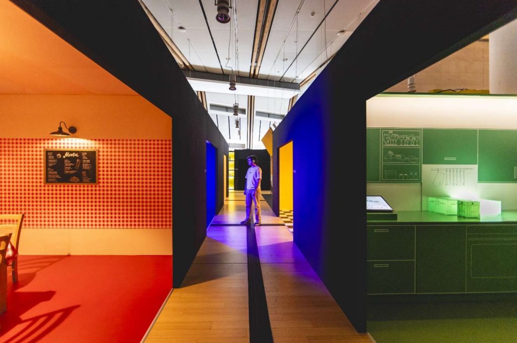La sezione La strada dei ristoranti esplora il ruolo dei suoni nei vari ambienti gastronomici, dalla trattoria tradizionale al ristorante stellato, dal fast food fino ai ristoranti futuristici o al buio. Ogni ambiente ha il suo soundscape personalizzato, creando un’atmosfera che guida le scelte e la percezione del cibo. Il visitatore ha anche l’opportunità di “degustare” una pietanza con le orecchie, scambiando impressioni e sensazioni con gli altri commensali. Un momento di condivisione che arricchisce l’esperienza sensoriale.