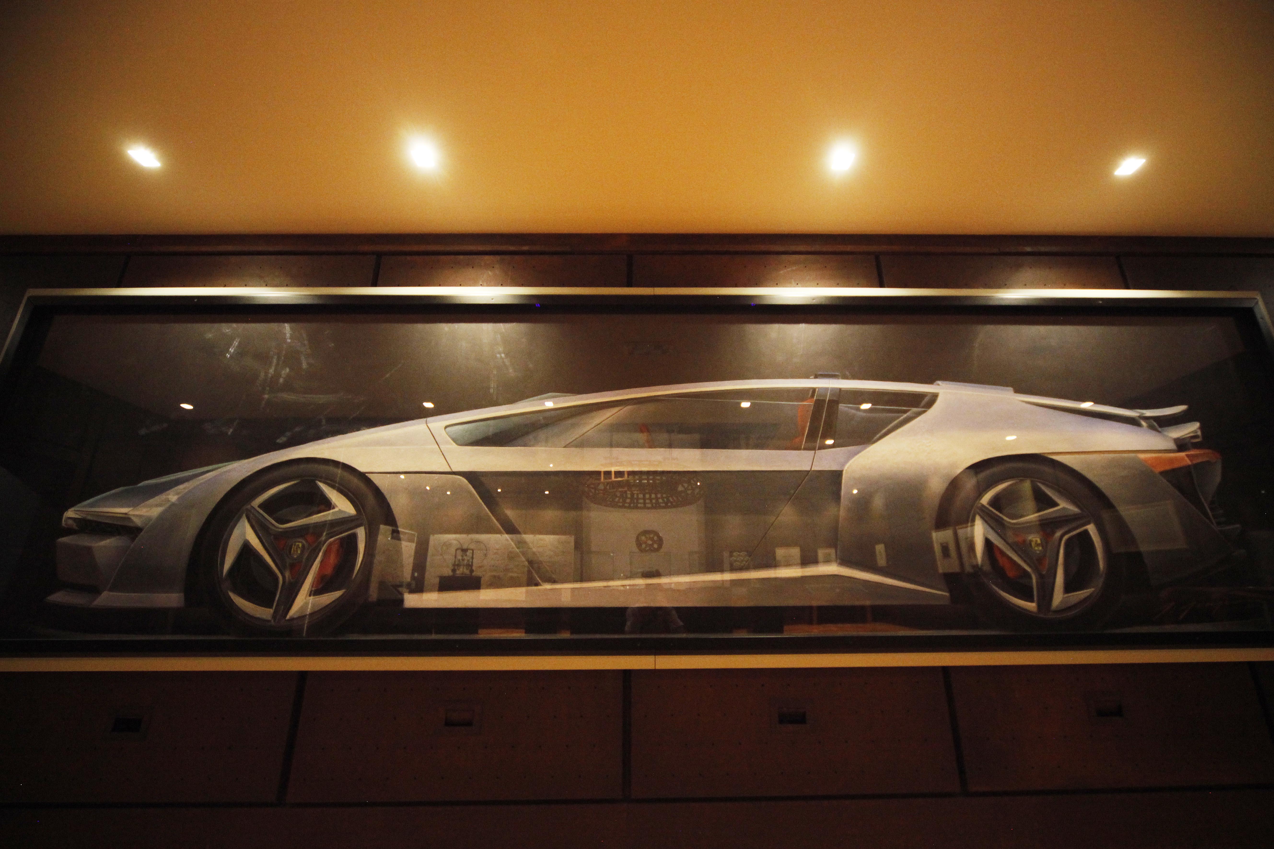 L’esposizione parte dall’esterno, nella zona antistante la facciata principale. Qui Giorgetto Giugiaro ha voluto collocare, nel mezzo della piscina, il modello della Sybilla, un prototipo realizzato nel 2017 per festeggiare i propri 80 anni.