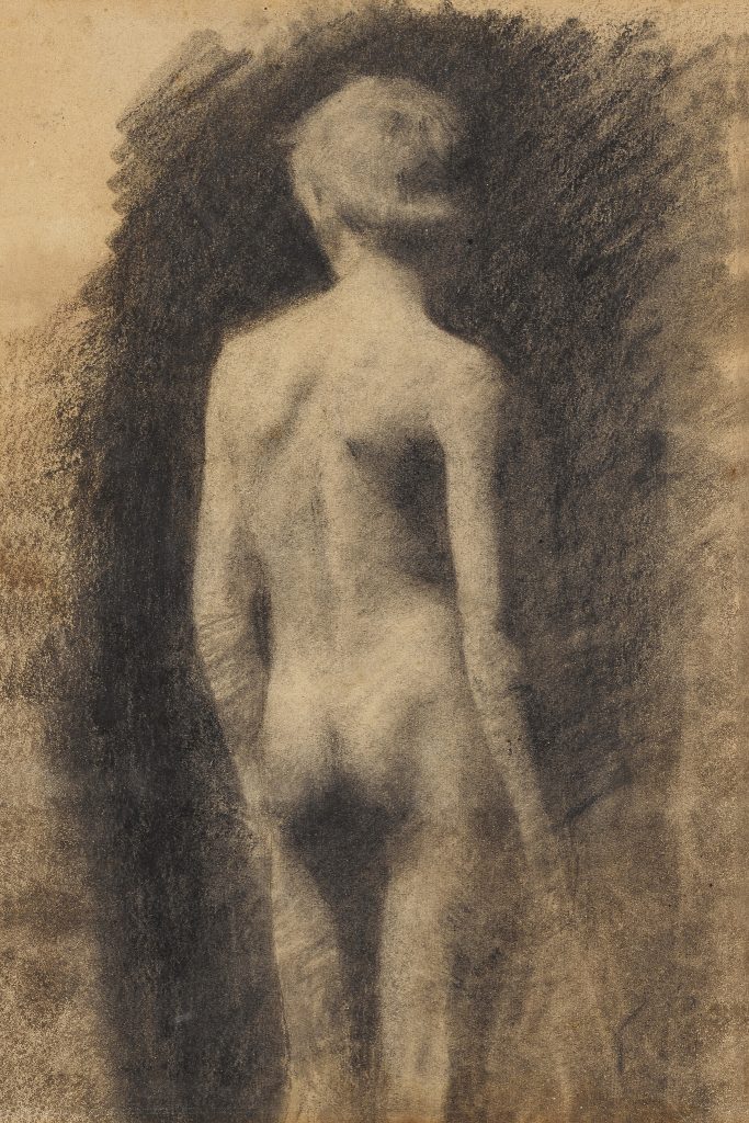 Allievo prima di Niels Christian Kierkegaard e Holger Grønvold, poi di Frederik Vermehren alla Kongelige Danske Kunstakademi, e infine di Peder Severin Krøyer, Vilhelm Hammershøi (Copenaghen, 1864-1916) debuttò nel 1885 e, come sottolinea il curatore, «viaggiò varie volte nella Penisola, visitò Roma, collezionò cartoline con vedute di città, e soprattutto rifletté sull’antichità classica e guardò ai cosiddetti Primitivi e agli artisti del nostro Quattrocento: Giotto, Beato Angelico, Masolino, Masaccio, Luca Signorelli, Desiderio da Settignano. Benché abbia dipinto una sola opera di soggetto italiano (che sarà in mostra), durante le proprie permanenze esercitò un’attenzione estrema e recepì spunti e insegnamenti, che contribuirono a delineare il suo personalissimo linguaggio. Non bisogna del resto ignorare il ruolo che il canonico soggiorno a Roma rivestiva tradizionalmente nella formazione dei giovani artisti danesi».