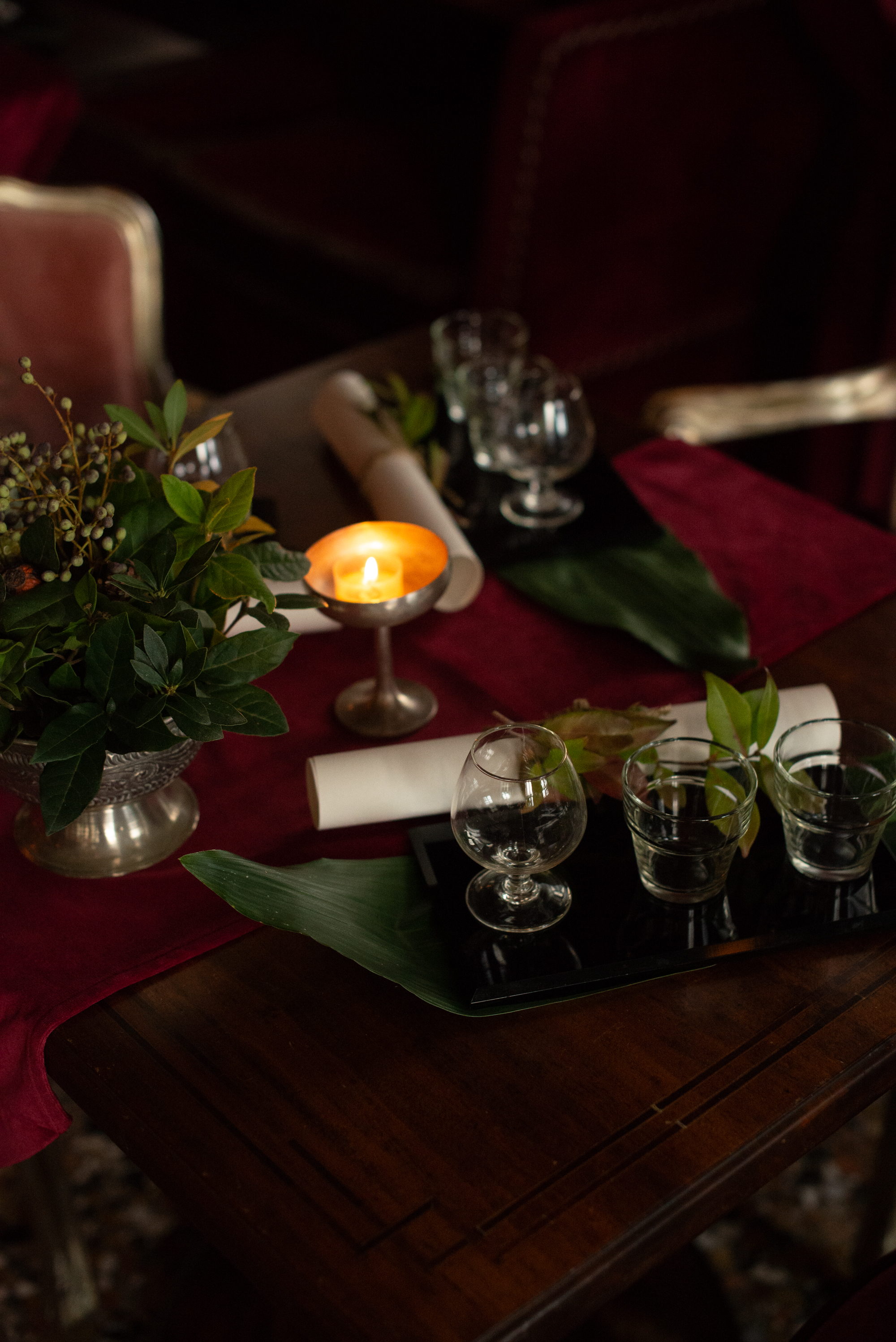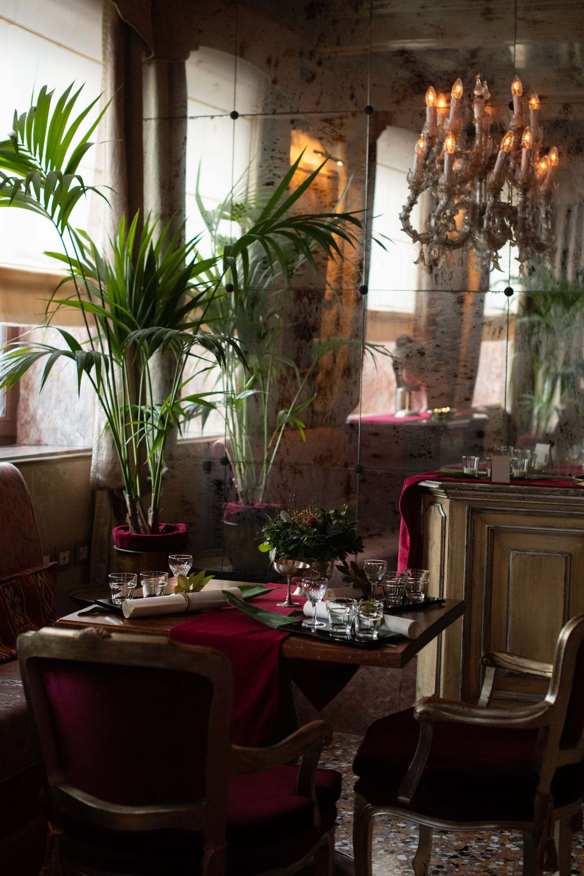 L’esposizione si sviluppa in un’intima sala dell’hotel, dove l’atmosfera cupa e misteriosa ben si sposa con le opere appartenenti alla serie Trasforming. Ecco che qui due apparenti quadri, in realtà display, riproducono dei cortometraggi in loop, ritraenti una natura morta che sembra dipinta dalla mano di artista del XVII secolo olandese, sullo stile dei dipinti Vanitas.