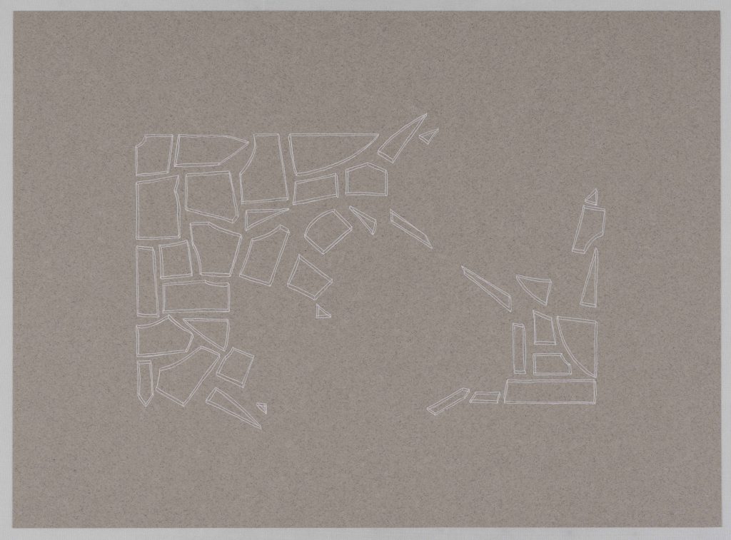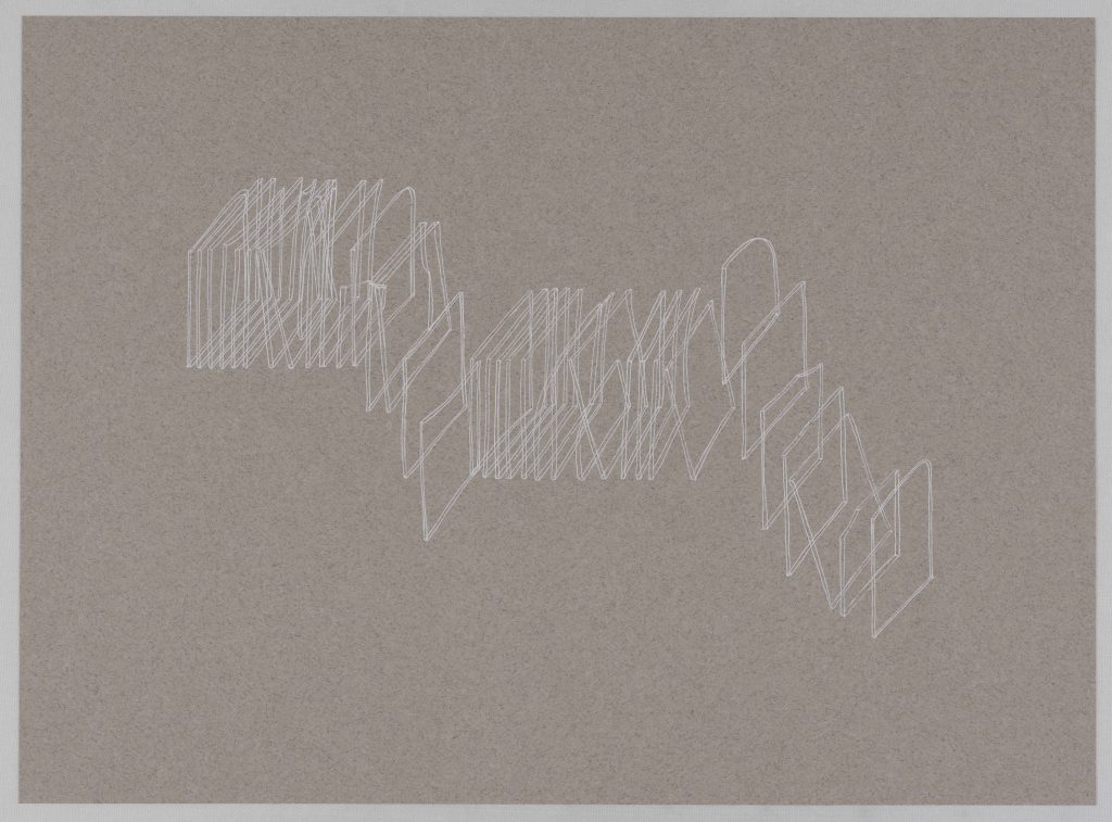 Riconoscendo che l’effimerità di un lavoro non è in antitesi con la sua possibilità di archiviazione ma, al contrario, essa è garantita dalla documentazione che ne sopravvive, il fuoco dell’indagine si sposta sulle componenti in cui l’effimero risiede. Ecco dunque la serie di Disegni Bianchi: simula le forme di labirinti ideali e perde le proprie tracce sulla carta mettendo in evidenza la semantica dell’archivio stesso, inteso come luogo di conservazione, di ricerca e salvaguardia di preziosi materiali di studio. Numerati di duemila in duemila, secondo l’esponenziale chiave d’infinito dichiarata da Borges nel suo racconto, le Pagine Dispari raffigurano labirinti prospettando pagine di una biblioteca in cristallo n bilico tra la composizione e la smaterializzazione, mentre le Pagine Pari dispiegano geometrie che potrebbero cristallizzarsi in vetrate immaginarie oppure frantumate disperdersi nella loro materia incipitaria.