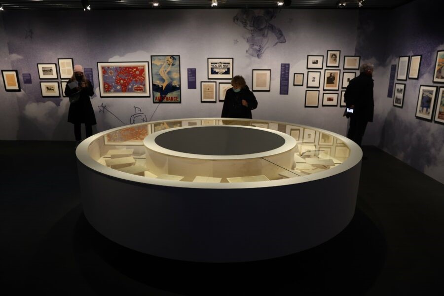 La mostra è commovente per tutti i dettagli personali che scopriamo di Antoine de Saint-Exupéry, ma è anche delicata per via dei dettagli del suo allestimento. Due sale hanno un soffitto di stelle fatto di piccole luci, tessuti blu notte e una riproduzione su tessuto di una luna. L’allestimento, come i disegni, ci fanno sognare e ci invitano a rileggere le pagine de “Il piccolo principe”.