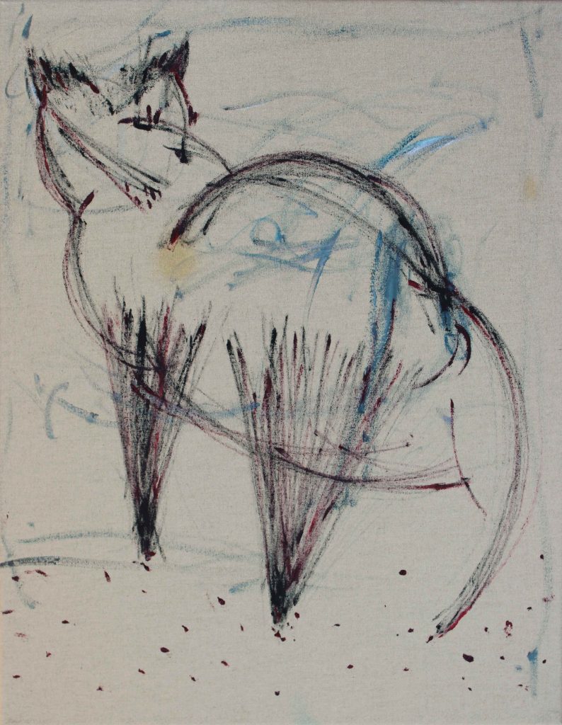 La seconda serie è ispirata all’immaginario felino nato dalla fantasia di un’allieva di Jacopo Casadei della scuola primaria. L’artista riflette sulla forza espressiva del tratto infantile, vettore espressivo di emozioni. Nelle sue opere pittoriche eguaglia quella carica con la grottesca muscolatura dei gatti da lui ritratti in una moltitudine di pose.