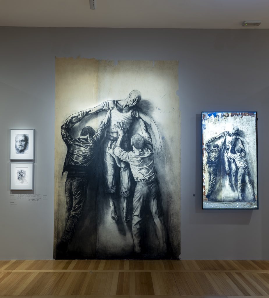Oggi considerato tra i padri fondatori della street art nonostante i suoi esordi anticipino di diversi decenni le prime forme d’arte oggi così identificate, Ernest Pignon-Ernest disegna, a grandezza naturale, corpi capaci di insinuarsi tra i muri, anche quelli più impenetrabili: fin dai sue esordi ha del resto saputo conciliare un impegno etico senza compromessi con un’espressione artistica in cui combina maestria tecnica, onestà esistenziale e capacità di abitare poeticamente il mondo – termine, l’abitare, nient’affatto casuale e che, anzi, si rifà ancora una volta a Je Est Un Autre, che indica come il soggetto erri nell’universo dell’alterità, a contatto con la presenza dell’Altro che, appunto, abita il sé e che agisce in modo imprevedibile e perturbante, al di là della propria consapevolezza.