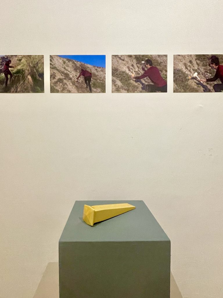 In un dialogo con la materia e con la delicatezza richiesta da un materiale fragile come la cera, Sergia Avveduti in Calanchi, restituisce con un intervento minuzioso le pieghe naturali che caratterizzano il paesaggio. Diverso l’approccio di Juan Esteban Sandoval, che in Escuchador 08 trasforma l’argilla locale in un corno acustico. La partecipazione diventa così attiva e lo spettatore è chiamato a “sentire” il paesaggio, non attraverso un suono, ma mediato dalla materia stessa. Nella dimensione performativa si inserisce Cuneiforme di Italo Zuffi: un chiodo da montagna in ceramica conficcato nelle pendici dei calanchi. L’azione, documentata fotograficamente, si pone come un gesto artificiale che incide il suolo, lasciando una traccia nel paesaggio.