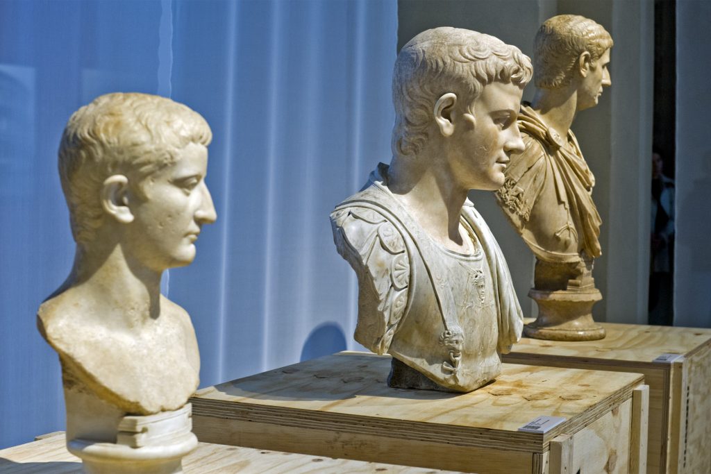 Nelle sedi dell’Ex Chiesa di San Pietro in Atrio e di Palazzo del Broletto la mostra si articola in sei sezioni e prende avvio attraverso una galleria di ritratti imperiali – tra cui il Ritratto di Nerone del Museo Palatino, il Ritratto di Giulio Cesare dell’Opera della Primaziale Pisana, il Ritratto di Caligola, dalla collezione Grimani del Museo Archeologico Nazionale di Venezia – e di ricostruzioni di alcuni luoghi iconici della Roma Flavia. Il racconto si concentra sul ruolo di Plinio nella società del suo tempo, sulla sua carriera politica e militare, sul rapporto con il potere e sui numerosi viaggi in Europa, ovvero quel contesto socio-culturale che è alla base delle vaste conoscenze messe in campo nella Naturalis Historia.
