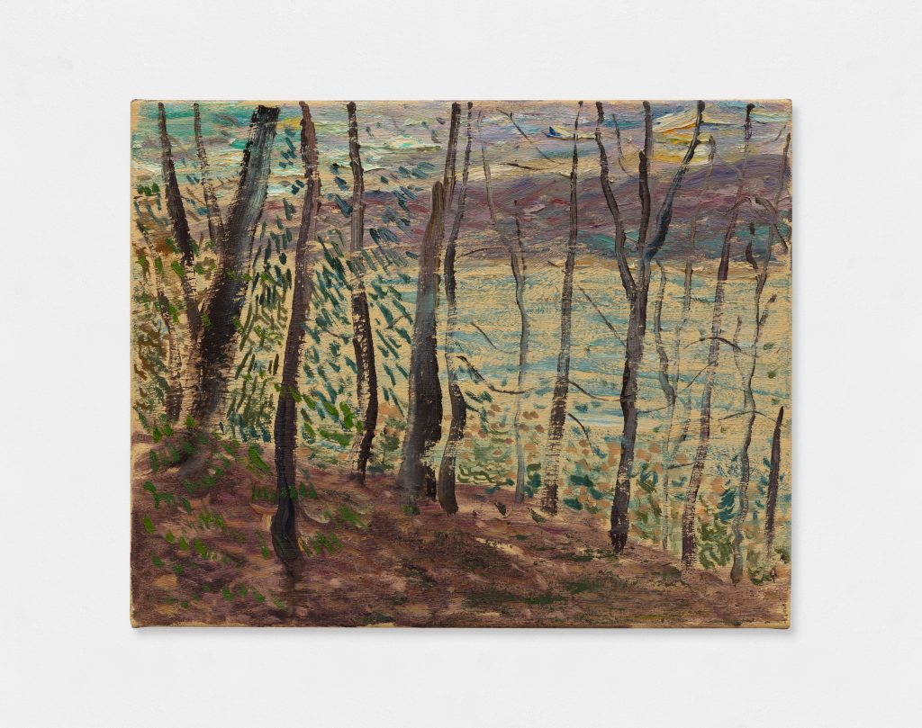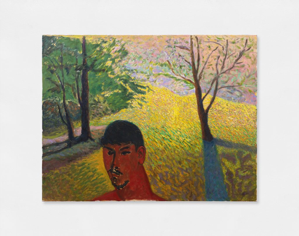 Horváth presenta nella sua prima personale italiana una selezione di autoritratti e paesaggi che culminano nella perfetta fusione dei due soggetti nell’opera Red self-portrait facing outwards (2024). Le esperienze soggettive dell’artista convivono, tra impressioni e visioni, in un racconto pittorico estremamente personale. Echi di richiami alla pittura dei Fauves, un po’ di Gauguin, di Cézanne, risuonano nel pennello dell’artista che definisce la sua espressione creativa «in bilico fra adolescenza ed età adulta». Lo stile di Horváth si contraddistingue per le sue tonalità intense e le figure estremamente semplificate; la proverbiale maestria della tradizione est-europea nel disegno a mano libera è evidente proprio in queste ultime che, se ad un occhio meno attento possono risultare semplici ed eseguite da una mano acerba, sono invece la dimostrazione lampante di una abilità acquisita e superata, perfetto esempio di un artista che padroneggia la tecnica e la fa sua.