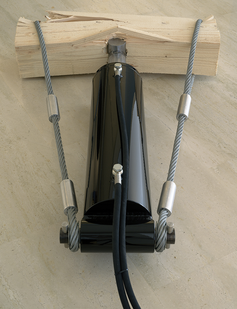 L’artista lavora su condizioni di equilibri iniziali, intervenendo e portando a nuove stabilità, a nuove circostanze: è lo stato delle cose che cambia, nulla è definitivo. Non rimane allora che la caducità, che diventa un valore, la qualità delle cose destinate a venire meno, a cadere. Tutto è provvisorio, avvolto da un senso di incertezza, che poi è proprio anche dell’uomo. Quindi più che di materia e di meccanica, di azioni e di transizioni, Sassolino lavora sulla condizione umana, sulla sua natura più intima, più precaria, come in Non separare il sì dal no: una contrazione tra forze opposte, in bilancio instabile, con elementi in tensione tra loro e il vetro che potrebbe frantumarsi da un momento all’altro. La possibilità del collasso è parte stessa della realizzazione artistica delle opere, declinate spesso in senso disfattista. Poiché elemento fondamentale dell’esperienza, il fallimento è contemplato, possibile poiché reale, umano. Le otto opere presentante, quasi tutte realizzate appositamente per la personale, dialogano con l’ambiente circostante di carattere semi industriale, in cui l’artista propone costanti sconfinamenti della forma, esplorando le possibilità della materia. Anche il tempo diventa oggetto del suo lavoro, da manipolare, comprimere e di cui conservare la memoria dentro alla scultura.