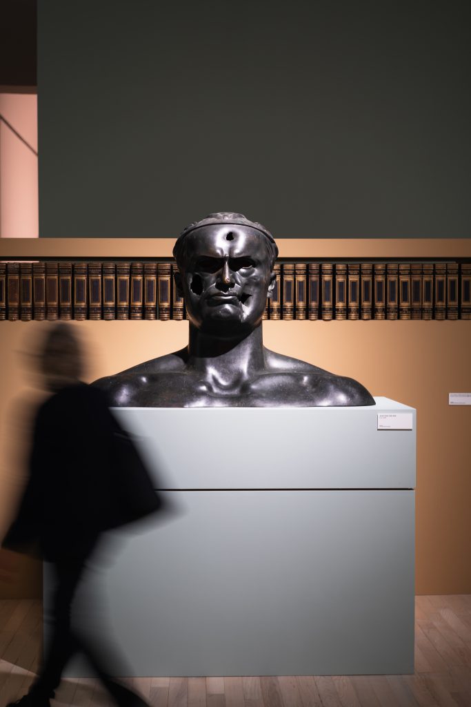 Aperta con l’inarrestabile e vertiginosa affermazione del regime fascista, la mostra si conclude simbolicamente con un busto bronzeo di Mussolini nelle vesti di imperatore romano commissionato ad Adolfo Wildt da Margherita Sarfatti. Preso a picconate dai partigiani nei giorni della Liberazione, questo Dux “caduto” chiude un percorso artistico le cui opere sono il frutto di un inevitabile contatto tra potere e cultura, quindi civiltà, una civiltà che si è infine con forza ribellata e liberata dal controllo del regime. Il busto danneggiato trova il suo posto legittimo accanto alle altre opere d’arte, afferma la curatrice Beatrice Avanzi, in quanto “monito e testimonianza del nostro passato”.