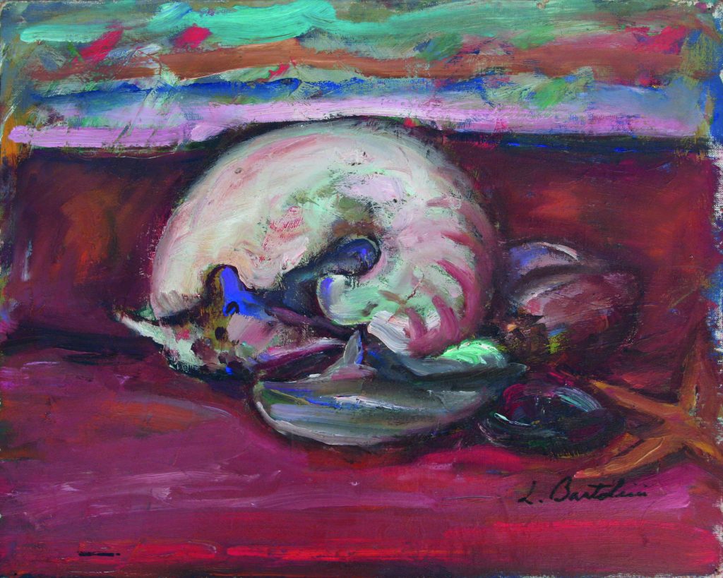 Prosegue verso un’ampia sezione dedicata alle nature morte è Bartolini stesso ad accompagnarci alla visione così dicendo: «Ho sempre goduto e nel modo il più sottile, profondo, grande, ineffabile quando ho fatto dell’arte. Ho goduto anche quando ho inciso i topolini morti, le spine di pesce, le farfalle imbalsamate: le cose le più maldestre per gli altri, per me costituirono dei poemi che, ripeto, mi sollevarono in paradiso». Spatola e martin pescatore del 1937, Il tavolo dell’artigiano del 1955, La grande conchiglia del 1960: le nature morte hanno sempre avuto un ruolo di assoluto rilievo all’interno della produzione, sia essa grafica o pittorica, di Bartolini, che sempre rappresentava umili oggetti d’uso quotidiano interpretandoli istintivamente, essenzialmente e con gioia pittorica. C’è molto di personale in questa sala e culmina nella presentazione delle Trote (Le Trote, un’acquaforte del 1934, e Le Tre Trote, un olio su cartone del 1940) così accompagnate: «Caro Bartolini, mi mandi le “trote” (una delle prime copie, ma con un po’ di margine) e vedrò di pagarle al più presto, anche se non il giorno stesso del loro arrivo. Comunque le pagherò “senza dubbio”, e presto, nella solita misura di L. 100. Dopo, disgraziatamente, non potrò acquistarne altro, per lungo pezzo. Vado al di là delle mie possibilità persino con questi due acquisti; ma che vuole? Mi sono innamorato di queste sue cose, e l’amore non ragiona. D’altra parte non vorrei e non potrei mai accettare doni, a meno che non la sapessi milionario, e su ciò siamo perfettamente d’accordo. Buon Natale. Mi creda con amicizia e ammirazione».