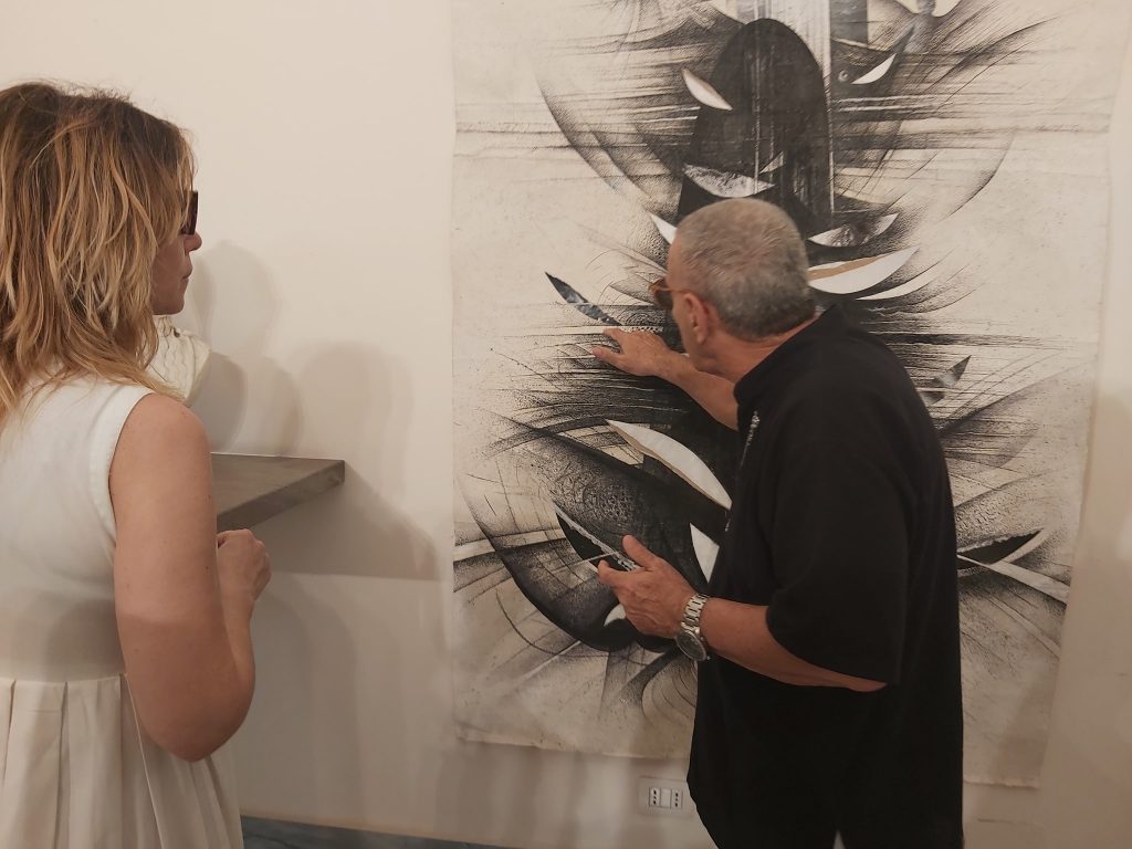 L’arte come la poesia richiede la necessità di sintesi capace di evocare il mondo e divenire essenza e riflessione. La ricerca pittorica di Ernesto Terlizzi, apparentemente aniconica, ha la capacità e la forza di suggestionare e indurci, appunto, alla riflessione con la leggerezza di una piuma e con la visionarietà di memorie lacerate e stravolte che colloquiano con i fantasmi della storia – come scrive Marco Di Capua nel testo di presentazione – «nell’incessante farsi e disfarsi della rappresentazione e della vita, l’urgenza di innestare e fondere i frammenti e schegge di un presente drammatico in uno spazio-tempo remoto, immemoriale». Si direbbe, una visione estetica improntata a evocare la forma e gli eventi di un immaginario collettivo nata cinquant’anni fa da iniziali presupposti informali e costantemente rinnovata nel tempo per approdare oggi a una felice sintesi creativa capace di mettere in relazione la storia e il presente, il passato con la realtà dei problemi di oggi.