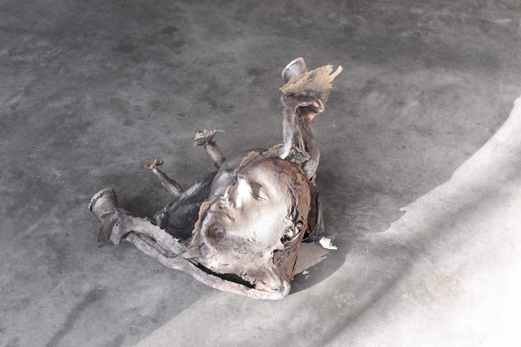 La mostra La continuazione degli occhi – progetto a cura di Andrea Tinterri e Luca Zuccala presso la sede italiana di Artcurial a Milano – presenta un corpus di opere che rappresentano appieno la ricerca artistica di Zucchella, approfondendo il rapporto di scambio continuo tra concetti come il tempo, lo spazio, la luce e la materia, il corpo e lo sguardo. I lavori di Cecchella non offrono una chiave di lettura univoca, bensì invitano ad un cambio di prospettiva di visione, una trasformazione dell’occhio attraverso un percorso espositivo che include sia opere forgiate con materiali preziosi e antichi che con composti chimici e sintetici. Una piccola sala è interamente dedicata al senso della vista: illuminato da una luce che sferza l’ambiente quasi totalmente buio, il calco degli occhi dell’artista dialoga con l’opera Solo con occhi. Questa – opera video di circa 3 minuti – presenta un’inquadratura stretta sugli occhi di Cecchella che si aprono e si chiudono ripetutamente, creando una sorta di punto di contatto con il pubblico che osserva a sua volta. Andrea Cortellessa scrive nel testo Eyes Wide Shut – incluso nel catalogo della mostra – riferendosi a quest’opera: “… i movimenti invisibili di quella superficie lucida e curva – sotto la pelle calda e accudente – ci dicono che l’occhio dell’artista è vivo. E che allora – con ogni probabilità – lo è anche il nostro. Gli occhi di Nicolò Cecchella – lo si è visto – non restano chiusi tutto il tempo. Se lo si è visto – però – è perché non sono rimasti chiusi neppure i nostri.”