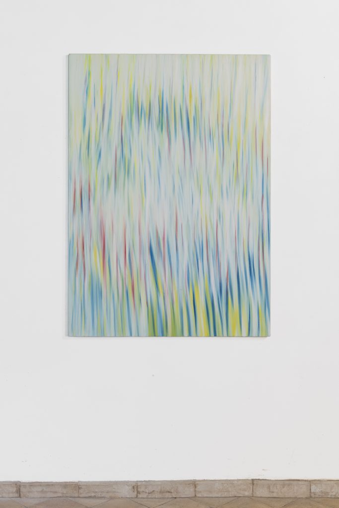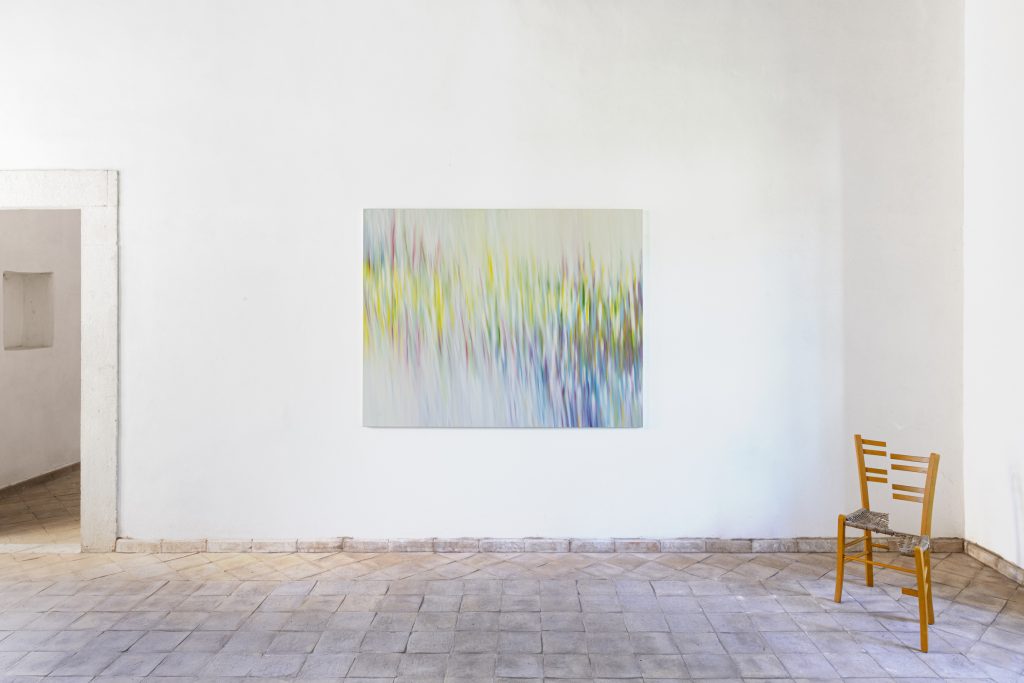 Se la domanda è, allora, cosa resta perché il nostro modo di guardare non sia una forma di cecità di percezioni e di sensazioni, la risposta di Federika Fumarola e di Fabio Giorgi Alberti ci coinvolge in un non marginale dialogo di pausa e di riflessione. Due Paesaggio Relazionale di Fumarola, che fin dagli studi liceali indaga la percezione approfondendola nei suoi stati latenti, demistificano le immagini stereotipate, riconoscibili a priori e mistificatorie della realtà. «Nel corso della mia ricerca, astratta ma sempre originaria da un dato reale, ho preso i passaggi di materia, di cui i fenomeni atmosferici sono un esempio, come punto di partenza per addentrarmi, ancora di più, nel terreno dell’astrazione e indagare il paesaggio, anche quello umano. Paesaggio Relazionale, come esprime anche il titolo, evoca non soltanto l’idea di qualcosa – in questo caso il paesaggio circostante di Tagliacozzo, che ho frequentato, rivedendolo nel passato, nei ricordi e nella memoria – ma vuole comunicare la relazione con il tempo presente e con tutti i fruitori, a partire da me, a cui l’immagine può dare vita», ha raccontato Fumarola.