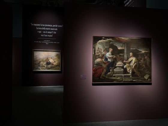 Post felicità segue la “Nostalgia dell’infinito”, che oltre ad essere l’ultima tranche espositiva è pure la più concettuale e contemporanea. Con un preponderante Anish Kapoor (allestimento pomposamente riuscito, ma Kapoor è quel contemporaneo che dove lo metti sta), un ammaliante Ettore Spalletti e un piccolo monocromo blu (Yves) Klein. E quel masterpiece umano di Lucio Fontana, che fa il paio con Kapoor sia per ricerca dinamico-spaziale, sia perché pure lui dove lo metti sta (bene). C’è da aggiungere che è l’unica sezione in cui si percepisce una dinamica transgenerazionale fondata sulla contemporaneità (su cui ci saremmo aspettati più spinta per tutta la mostra), grazie all’interazione intelligente tra i nomi citati e le visioni enigmatico-ottocentesche di artisti come Gustave Dorè o Giuseppe Pietro Bagetti. Quasi l’unica in verità: c’è la Malinconia I di Ruggero Savinio versus Melancholia I di Albrecht Dürer, analisi di uno stesso soggetto ad esattamente a 473 anni di distanza. Va aggiunto che Savinio offre sì una lettura incentrata sulla propria cifra stilistica, tuttavia votata a conservare il modello sul piano iconologico e iconografico. Come dire: il confronto è concettualmente e curatorialmente inappuntabile, ma sa un po’ di compitino. Perlomeno rispetto a una chicca di cui vi renderemo conto a breve.