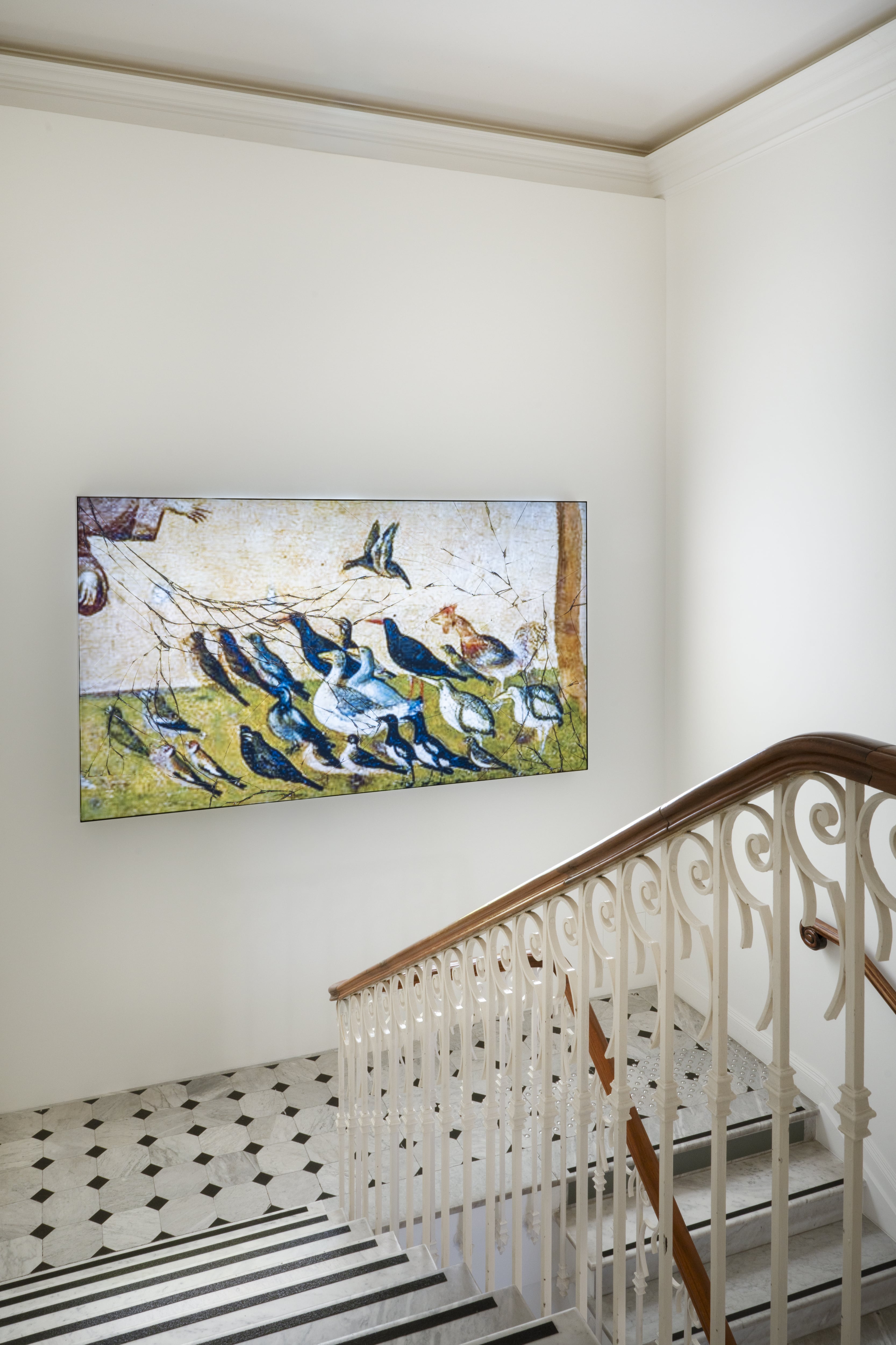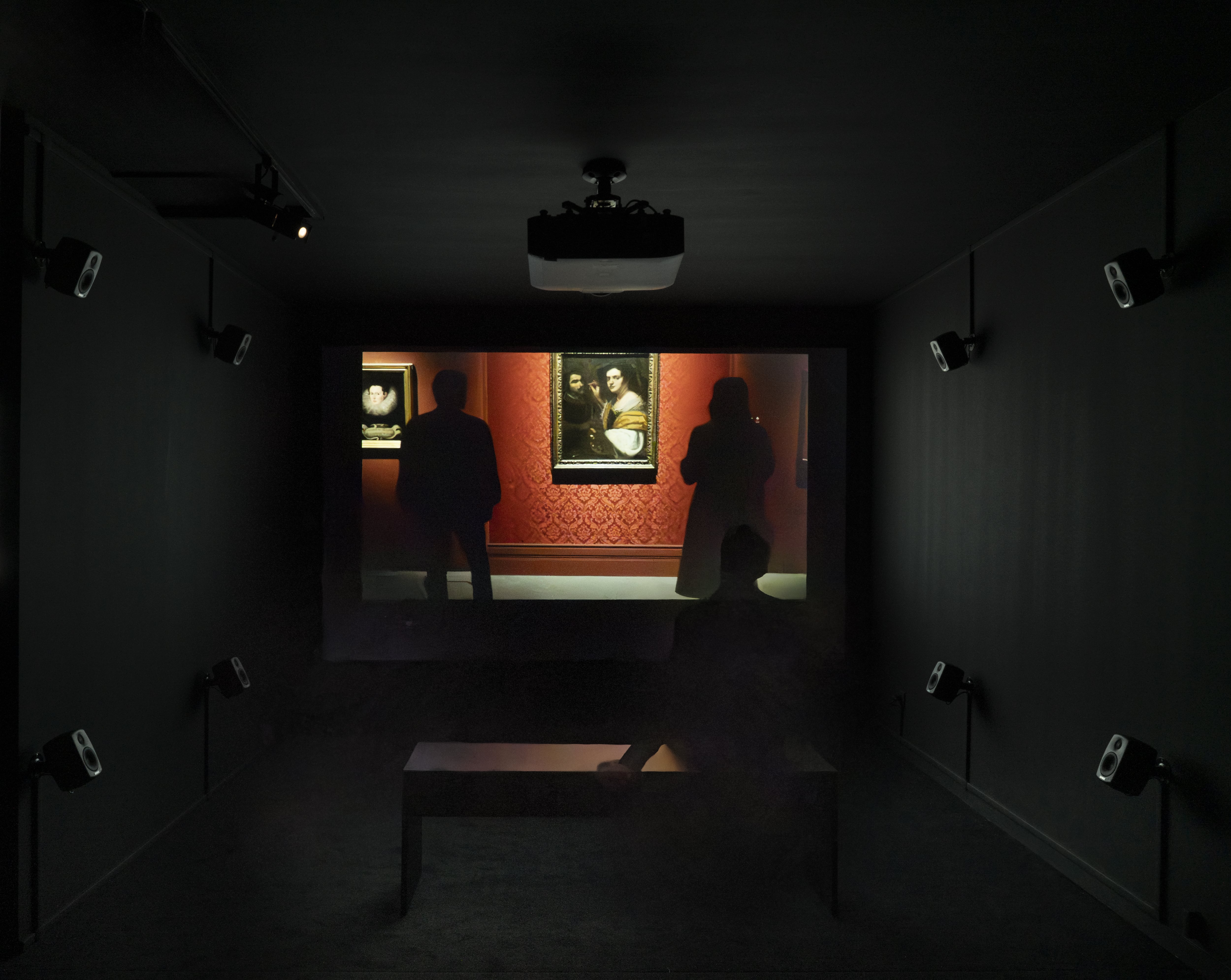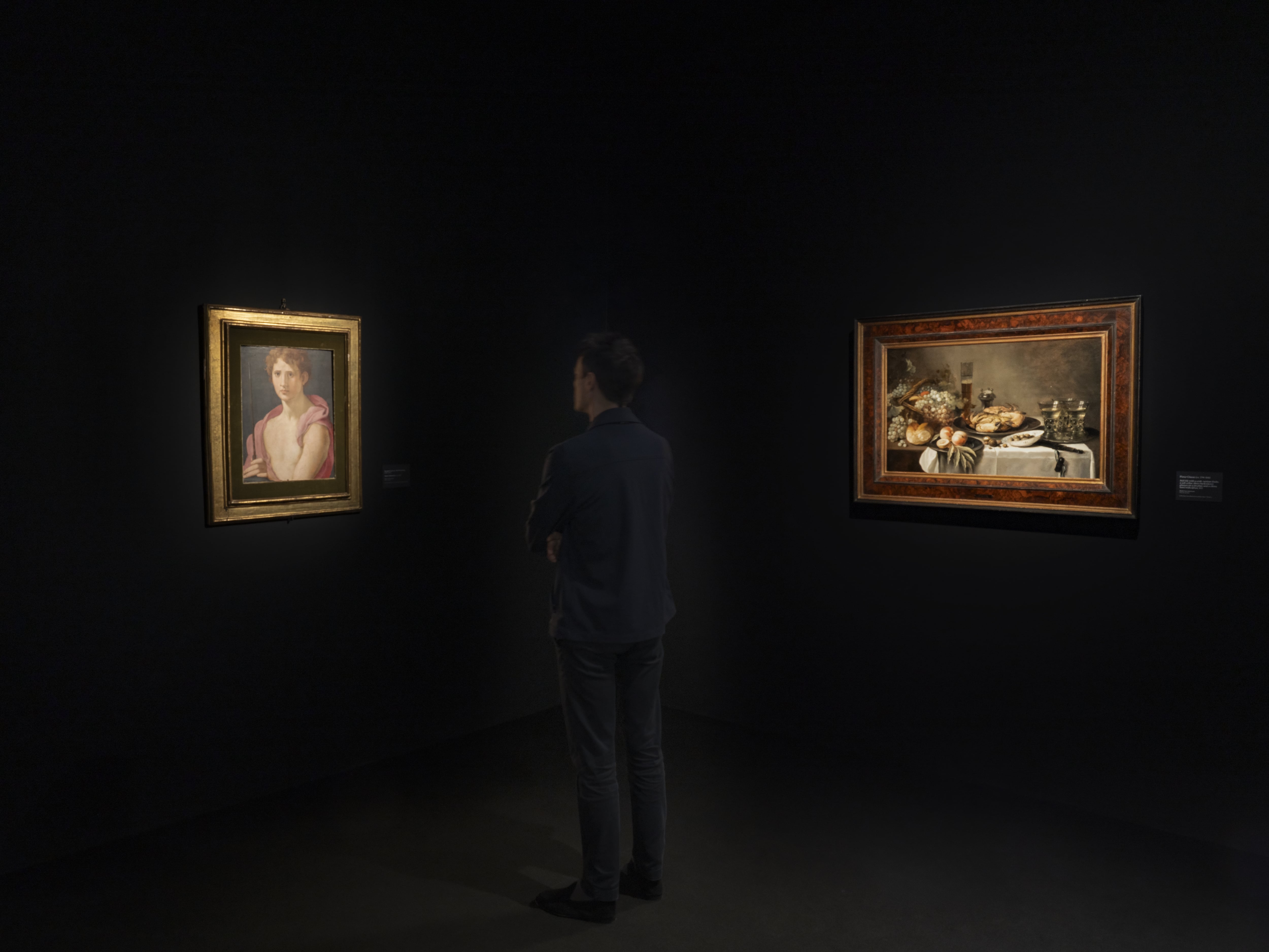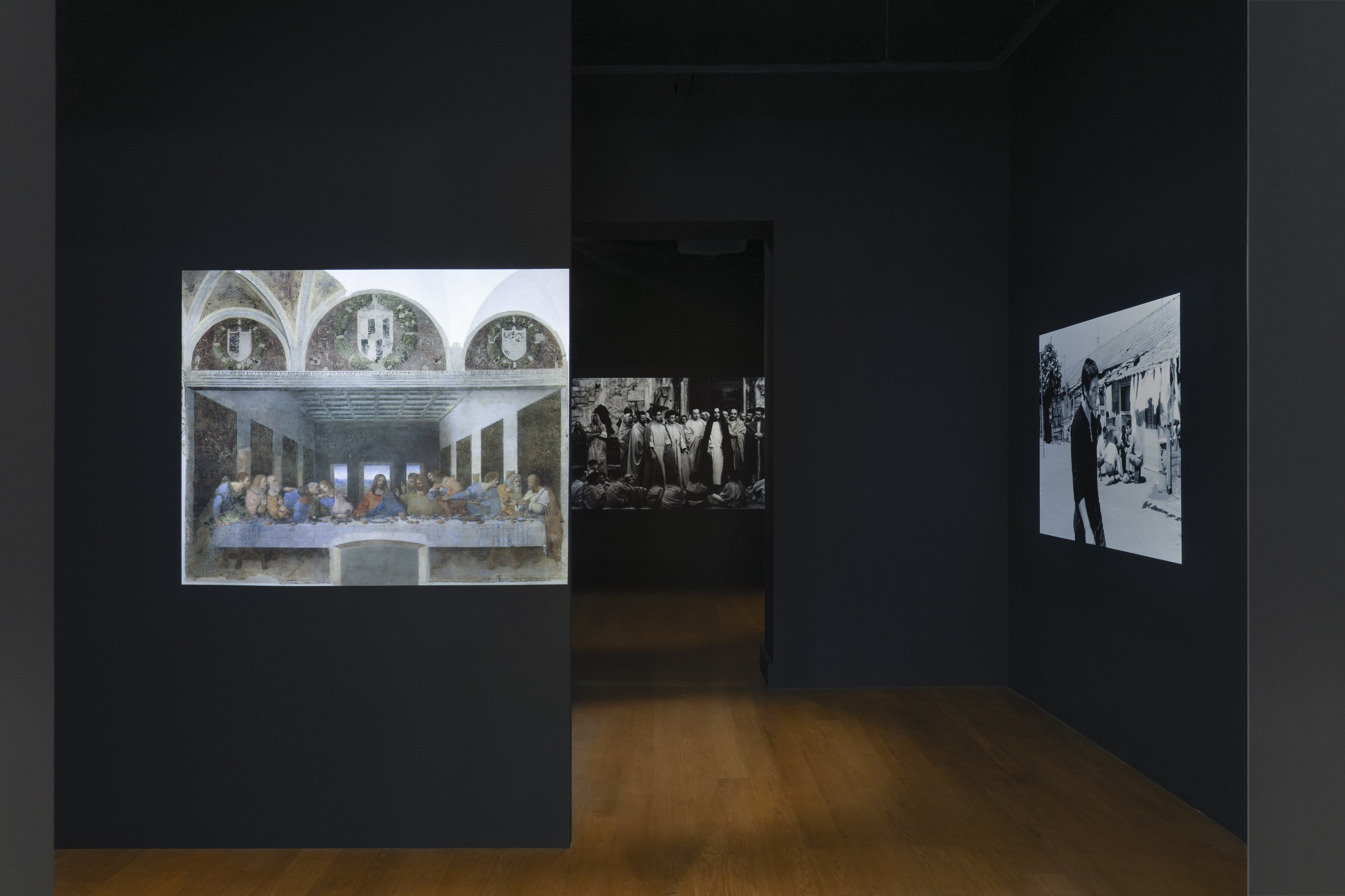 Cosa resta della Roma di Pasolini? Si chiede Alain Fleischer in La mère fantôme (video, 2023). L’artista francese proietta il ritratto di Anna Magnani lungo le strade, i palazzi e i luoghi delle riprese di Mamma Roma (1962) a sessant’anni di distanza. Charles de Meaux presenta Two voices in the murky light (video, 2024) in cui esplora il rapporto di Pasolini con la pittura, e più ampiamente tra letteratura e cinema. La camera segue un uomo che, passeggiando, legge un libro di Pasolini, conducendoci dalla periferia romana al centro della città, fino all’autoritratto di Artemisia Gentileschi, ossia l’Allegoria della Pittura (1637, Palazzo Barberini). Ciò rimanda a L’Angelo del Bernini nel film Accattone, che è l’unico esempio di barocco nella trilogia romana.