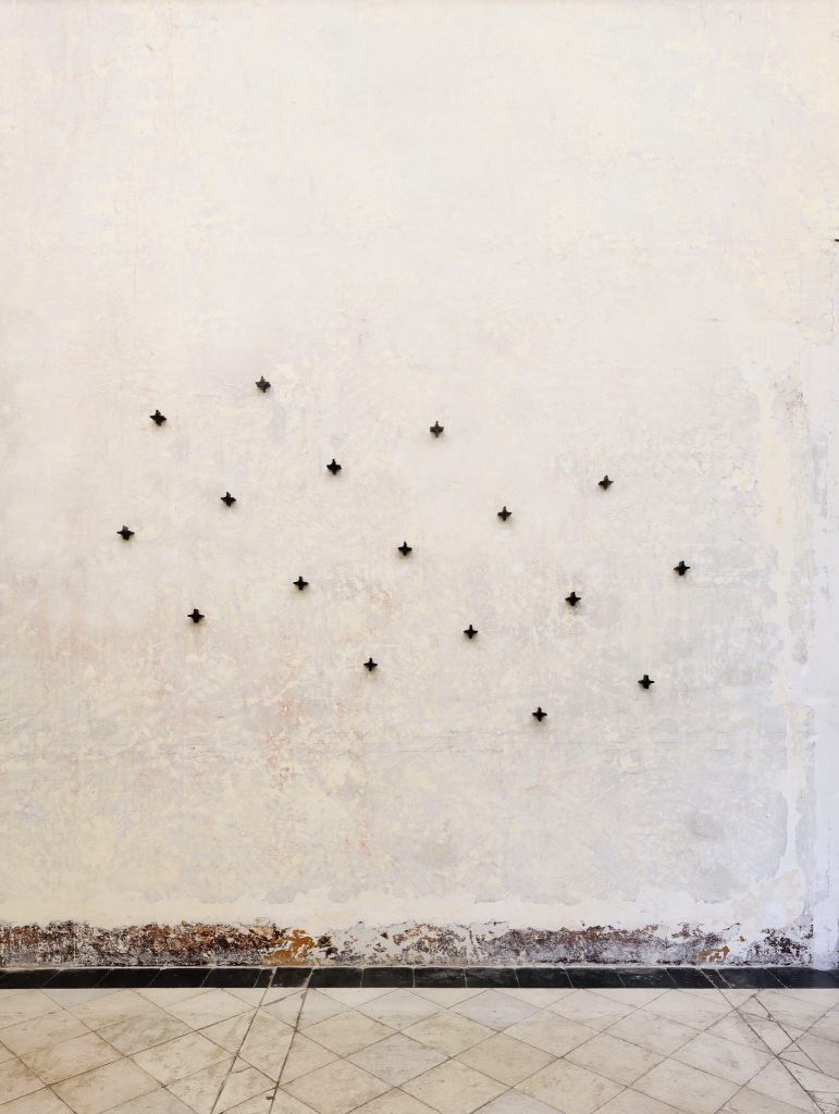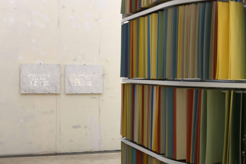 Dall’altra parte, in Montinaro, è l’atto della rimozione esercitato sui marmi a definire la medesima percezione di mancanza. Invero – scrive Lorenzo Madaro – «quello che ci viene palesato è lo spazio, tra corpo e assenza, della traccia inafferrabile del tempo». Con questa allusione all’impermanenza, dunque, diviene comprensibile cogliere pure il secondo territorio condiviso dai due autori, che è di carattere tematico e coincide con un’elaborazione di sintesi rivolta alle categorie della memoria e della storia, comunicando, più in controluce, la difficoltà umana nel razionalizzare gli effetti del decorrere del tempo.