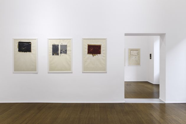 Quel Correre rapinoso attraverso le cose del mondo, sentendosene parte, è stata una delle qualità di Schifano. E dovremmo ringraziare la sua scaltrezza intellettuale per questa mostra qualitativamente simile a una “capsula del tempo”, in cui la carta dei Senza titolo presenti è ingiallita assieme alle parole, marcando una linea tra il nostro “essere noi” di oggi e il suo “essere Schifano” di ieri. In cui anche le cornici, avendo perso l’originale bianco vivido e con qualche segno in più, citano tutto un proprio peregrinare spazio-temporale. Così come le immagini di viaggio dei Paesaggi urbani, scampoli di una vita trasversale all’ufficialità, scorciata e impressa tra contrasti cromatici sbiaditi. Formati differenti, percorsi differenti, per concentrazioni narrative perfettamente combacianti.