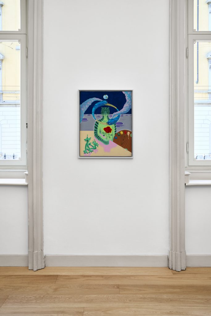 La mostra Tiger Tateishi alla Galleria Tommaso Calabro si sviluppa in tre sale e presenta una selezione di opere che spaziano da dipinti a lavori su carta realizzati tra gli anni Sessanta e Settanta, periodo della permanenza dell’artista a Milano.