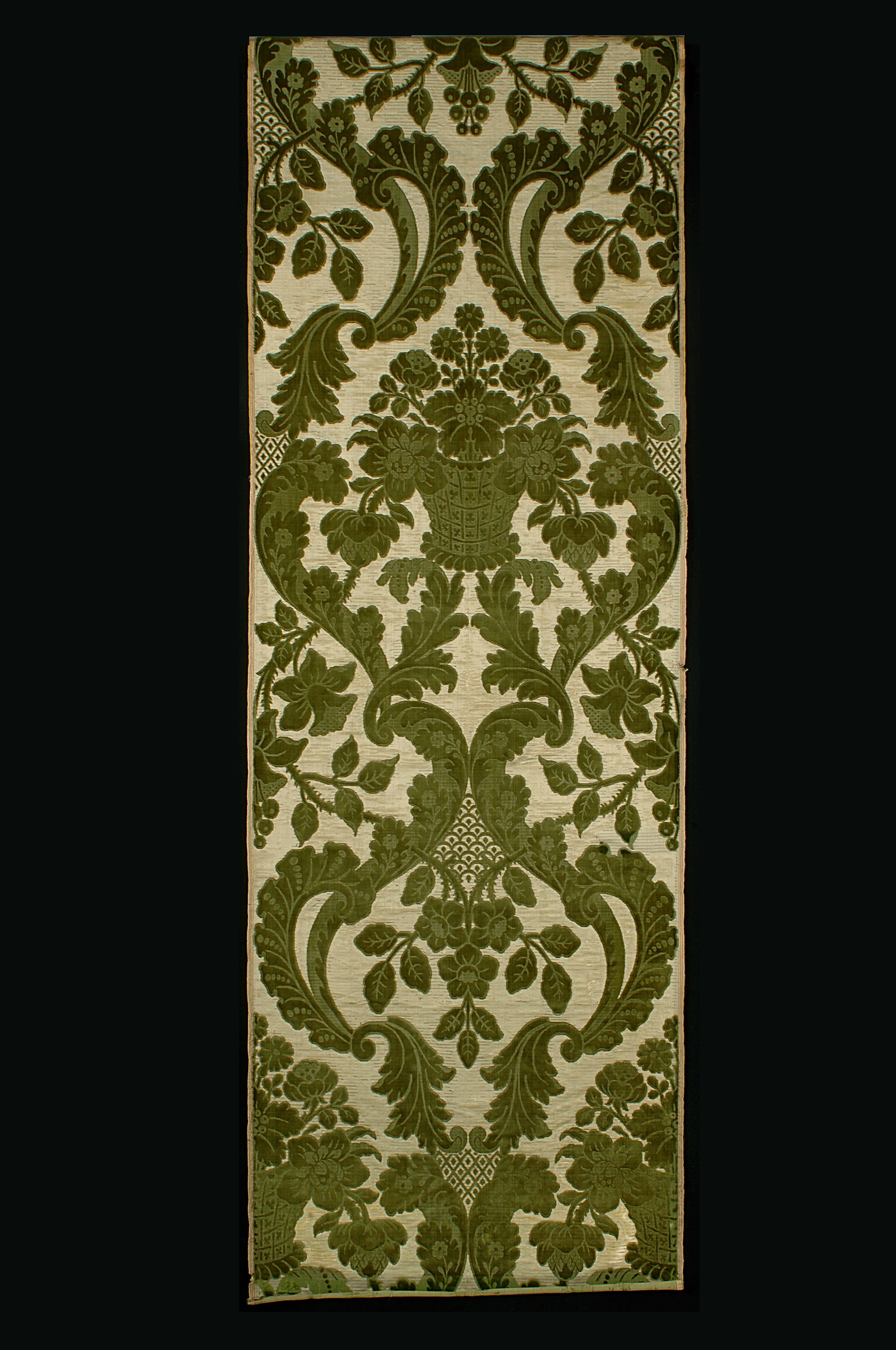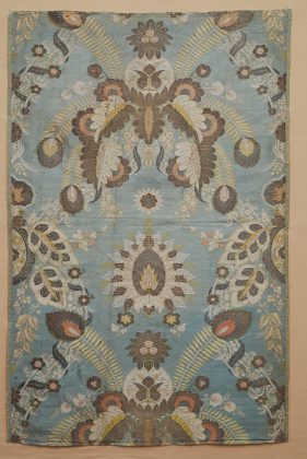 Affiancati nelle vetrine storiche della sala, teli da arredo e stoffe da abbigliamento raccontano il mutare del gusto decorativo nei secoli, con un focus sull’abbigliamento e sullo stile del XVIII secolo, quando i motivi bizarre, a pizzo, a isolotti, a meandri si avvicendavano rapidamente, seguendo la moda dettata da Parigi e dalle manifatture lionesi, che detenevano la palma dell’eccellenza.