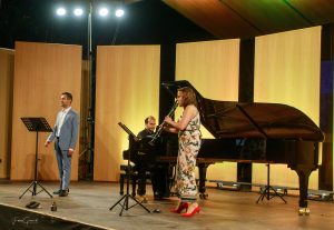 Opzione due. Così il direttore artistico Gianluca Marcianò ha fatto un po’ come l’allenatore di calcio che sceglie i rigoristi, tutti artisti amici presenti in zona, salvando la situazione con un programma “a sorpresa” da cui non si poteva pretendere la perfezione, ma che ha regalato qualche piacevole occasione d’ascolto. Piacevole ad esempio ascoltare Erica Piccotti violoncellista e Costanza Principe pianista, il cui suono non certo imponente ma ricco di sfumature acquerellare ha sottolineato delicatezze espressive nella versione cellistica dei tre Phantasiestücke di Schumann e del Vocalise di Rachmaninov. Da riascoltare, magari in uno spazio più raccolto, come da riascoltare in altre musiche anche l’ottima clarinettista Gaia Gaibazzi che s’è inventata la versione di un Lied di Ludwig Spohr con il controtenore David Feldman e Marcianò qui in veste di pianista; ma c’erano pagine per tutti i palati, da Paganini e Sarasate con il violino di Giulio Plotino a Piazzolla con il sax di Valentina Renesto accompagnata da Giuseppe Bruno. Suono in generale, si diceva, un po’ flebile, oltre le prime file: per il futuro, una cassa armonica acusticamente più “protettiva” e/o una tettoia proiettata oltre il proscenio forse faranno piangere il piatto del bilancio, ma di certo aiuteranno gli ascolti.