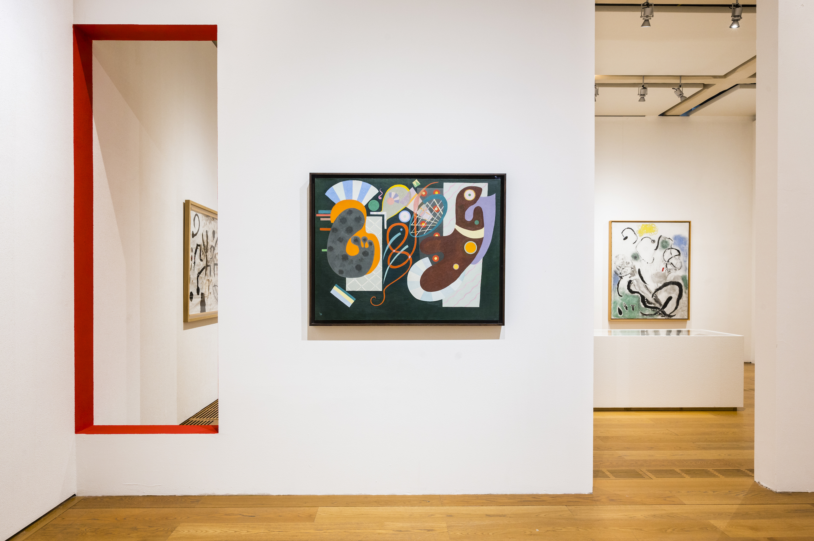 Oltre Mirò si è voluta seguire una linea molto importante, forse un po’ di nicchia: quella di sottolineare l’importanza del disegno e della grafica. Per questo sono stati scelti tre magnifici disegni di Giacometti, che ha dichiarato “che tutto nasce, tutto parte e si risolve nel disegno”. E su questa linea, proprio accanto a Giacometti, abbiamo scelto di esporre una selezione di acqueforti e acquetinte di Chillida che rappresentano la sua mano, la mano dello sculture. Durante tutto il suo percorso ha assegnato una grandissima rilevanza alla grafica, al progetto, al pensiero che si traduceva nella scultura preceduta da questa forma di elaborazione. In mostra è presente anche un pezzo straordinario di Antoni Tàpies. Tra gli autori poco conosciuti di cui parlavo prima, ma che andrebbero riscoperti c’è Anna-Eva Bergman, moglie di Hans Hartung, una straordinaria artista che lavora con una propria cifra stilistica molto forte, con un’am ricerca nell’uso dei materiali. Sono esposti, inoltre, disegni di Calder, un bellissimo lavoro della famosa serie degli Atelier di Braque, opere di Matisse e di tantissimi altri».