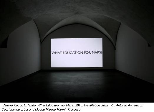 Il ciclo denominato What Education for Mars? a cui l’artista lavora dal 2011, è esposto per la prima volta come installazione a tre canali in occasione della mostra omonima, in corso al Museo Marino Marini di Firenze fino al 9 maggio 2015. L’opera si compone di tre capitoli, frutto di un intenso lavoro al Liceo Artistico De Chirico di Roma, all’ISA, l’Università delle Arti di Cuba, e alla Valley School di Bengalore (India), un complesso educativo trasversale basato sugli insegnamenti del filosofo Jiddu Krishnamurti.