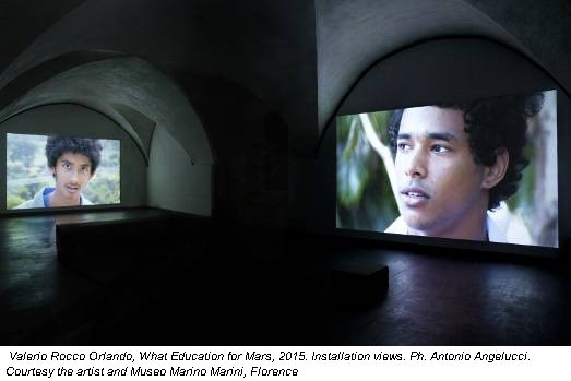 What Education for Mars? è un lavoro stratificato che si interroga sui sistemi educativi internazionali mediante un progetto che, nell’esposizione fiorentina, viene scandito in due momenti distinti. Da un lato la documentazione e la sua restituzione visiva, il ritratto molteplice dei tre sistemi scolastici sviluppato attraverso dialoghi, interviste, intense conversazioni con l’artista, che ha compiuto nelle scuole un lungo periodo di residenza e lavoro. I video sono disposti nello spazio del museo in due stanze adiacenti, a restituire la distinzione temporale e tecnica dei filmati ma anche le diverse “temperature” e contenuti dei vari racconti. Il progetto romano, l’ultimo che lo spettatore fruisce, è il primo a cui Valerio Rocco Orlando ha lavorato e da cui ha preso le mosse nell’ottica di un ampliamento internazionale del lavoro: la visione decadente e il senso di incomunicabilità che caratterizza la narrazione degli adolescenti romani contrasta con le esperienze dei ragazzi cubani e indiani, permeate da un rapporto di mutua comprensione, libertà e scambio tra docenti e studenti. I tre lavori presentano la medesima attenzione al piano visuale e linguistico del racconto: l’artista, attraverso un sapiente montaggio, riesce a uniformare i ritratti e gli intensi primi piani ai contenuti salienti della comunicazione verbale; le riprese ravvicinate dei volti, le loro anatomie e mimiche, operano sinergicamente con la narrazione, favorendo un coinvolgimento emozionale da parte dello spettatore ai vissuti trattati.