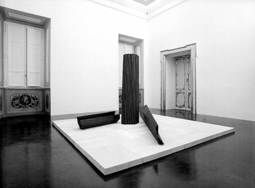 Nunzio, Senza titolo, 2003, legno dipinto e combustione su legno, 170 x 300 x 300 cm.