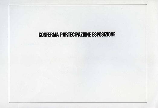 Emilio Prini Conferma partecipazione esposizione 1970 Stampa su cartoncino, cm 50 x 70 Collezione Ovidio Jacorossi, Roma Crediti fotografici: Giorgio Benni, Giulio Benni