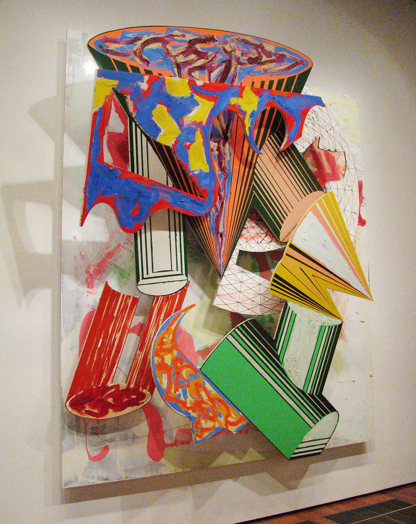 A partire dal 1960, Stella iniziò a creare tele sagomate, tagliando gli angoli delle sue opere e dipingendo su forme geometriche complesse come trapezi, pentagoni ed esagoni. Sono lavori che esaltano la fisicità dell’oggetto dipinto, costringendo lo spettatore a sottrarsi alla seduzione della pittura concentrandosi invece sulla sua datività fisica e materiale. Nel corso degli anni, le sue opere divennero sempre più tridimensionali, incorporando elementi di collage e portandolo alla realizzazione di vere e proprie sculture.