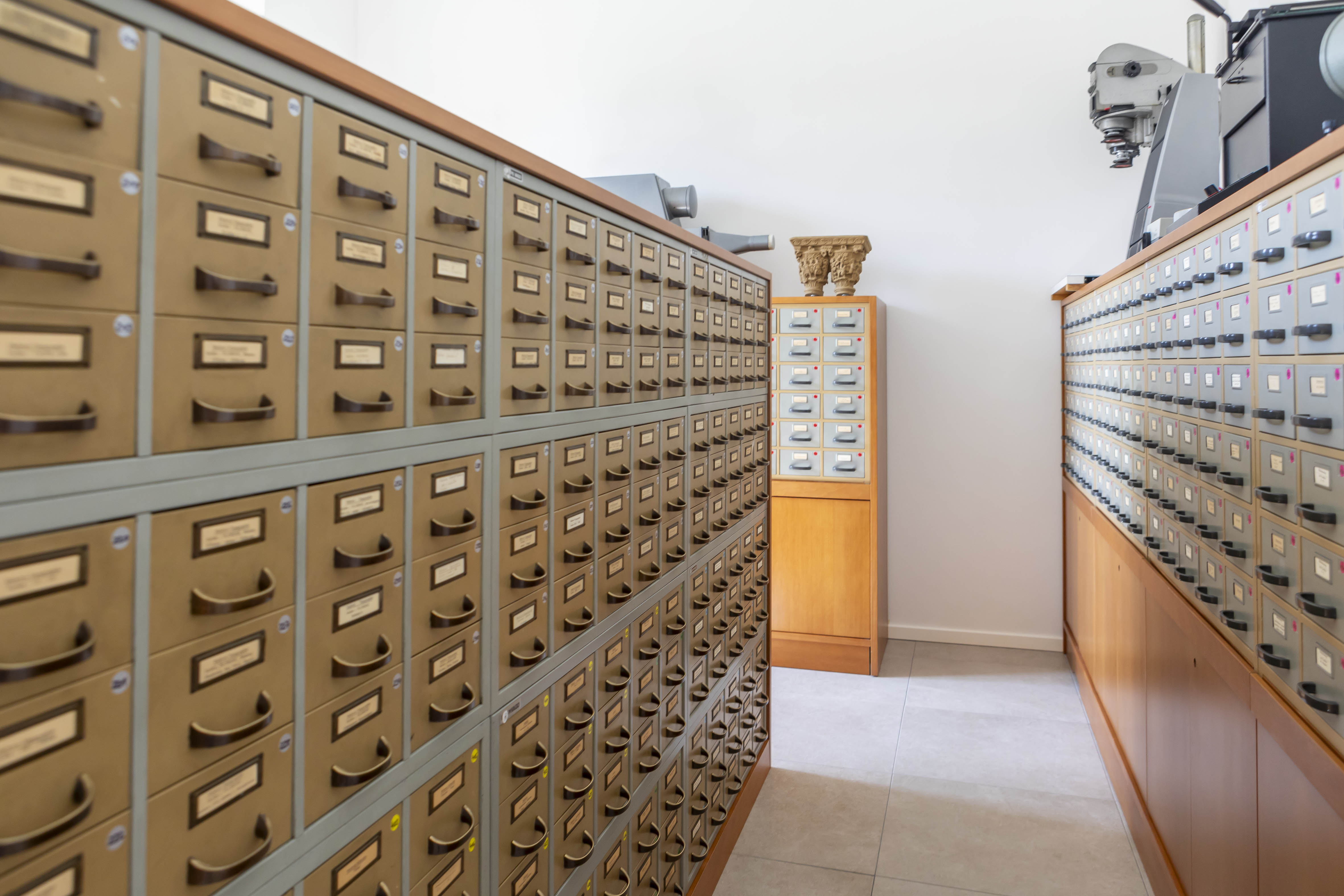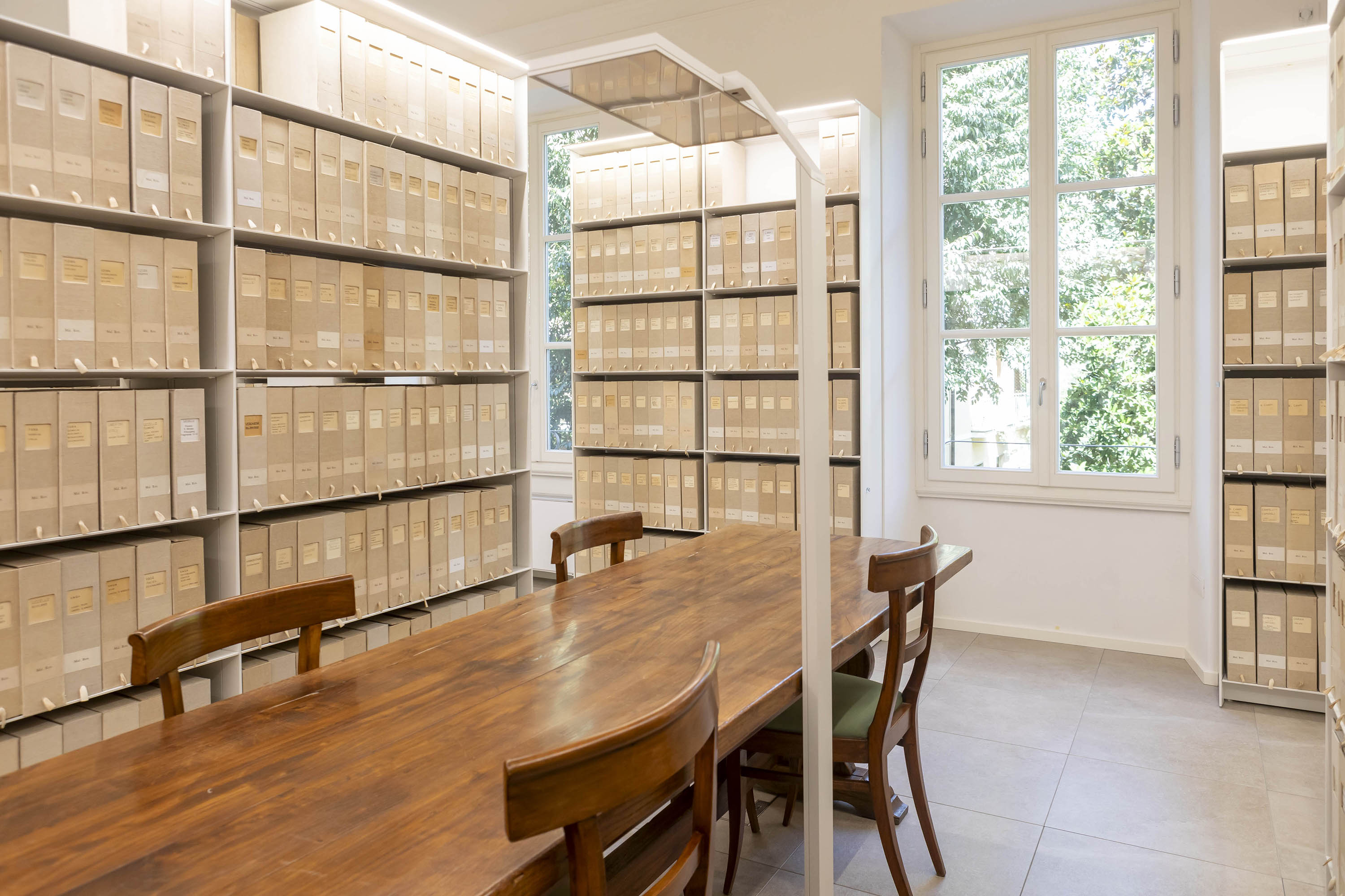 L’ascensore novecentesco presente al centro del vano scale è stato rimosso e le scale sono ritornate al loro assetto ottocentesco originale. Le scaffalature di Biblioteca e Fototeca, in alluminio verniciato e dotate di un sistema di illuminazione integrata, si estendono per oltre 3mila metri lineari di scaffali e sono state progettate ad hoc per ogni stanza.