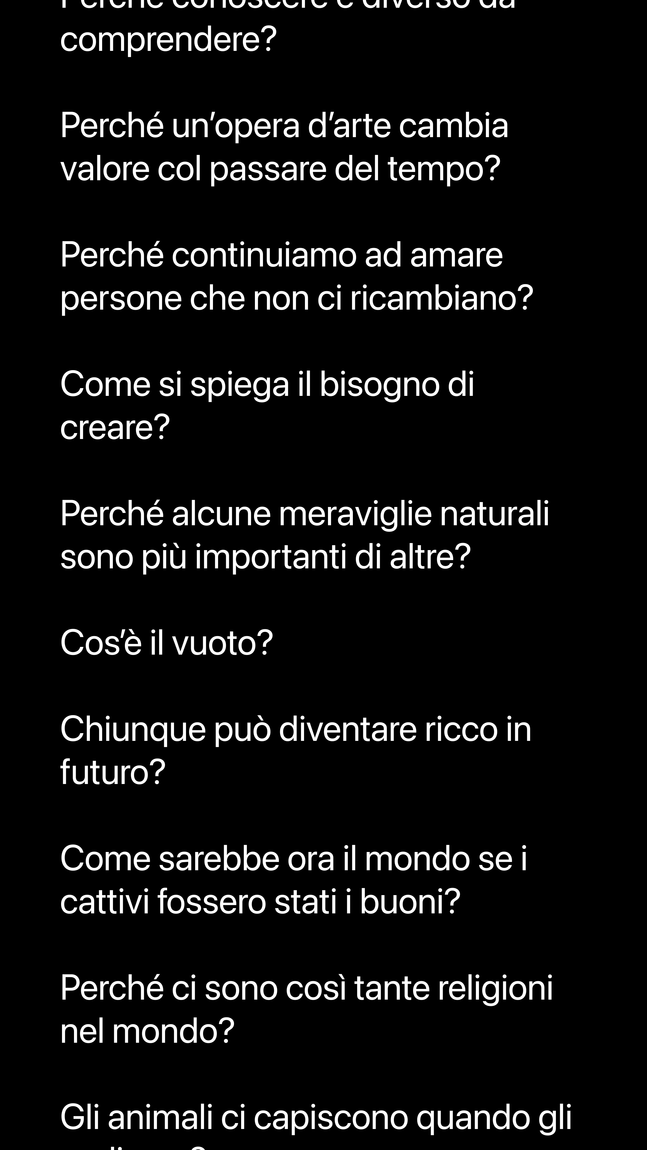 In Il diavolo fa le pentole, un video senza audio mostra una sequenza ininterrotta di 41 domande, generando un loop di interrogativi privi di risposta. Il testo, presentato nel font standard di Apple, trasforma lo schermo in uno spazio di riflessione sospesa, dove il pensiero individuale si scontra con l’automatismo della tecnologia.