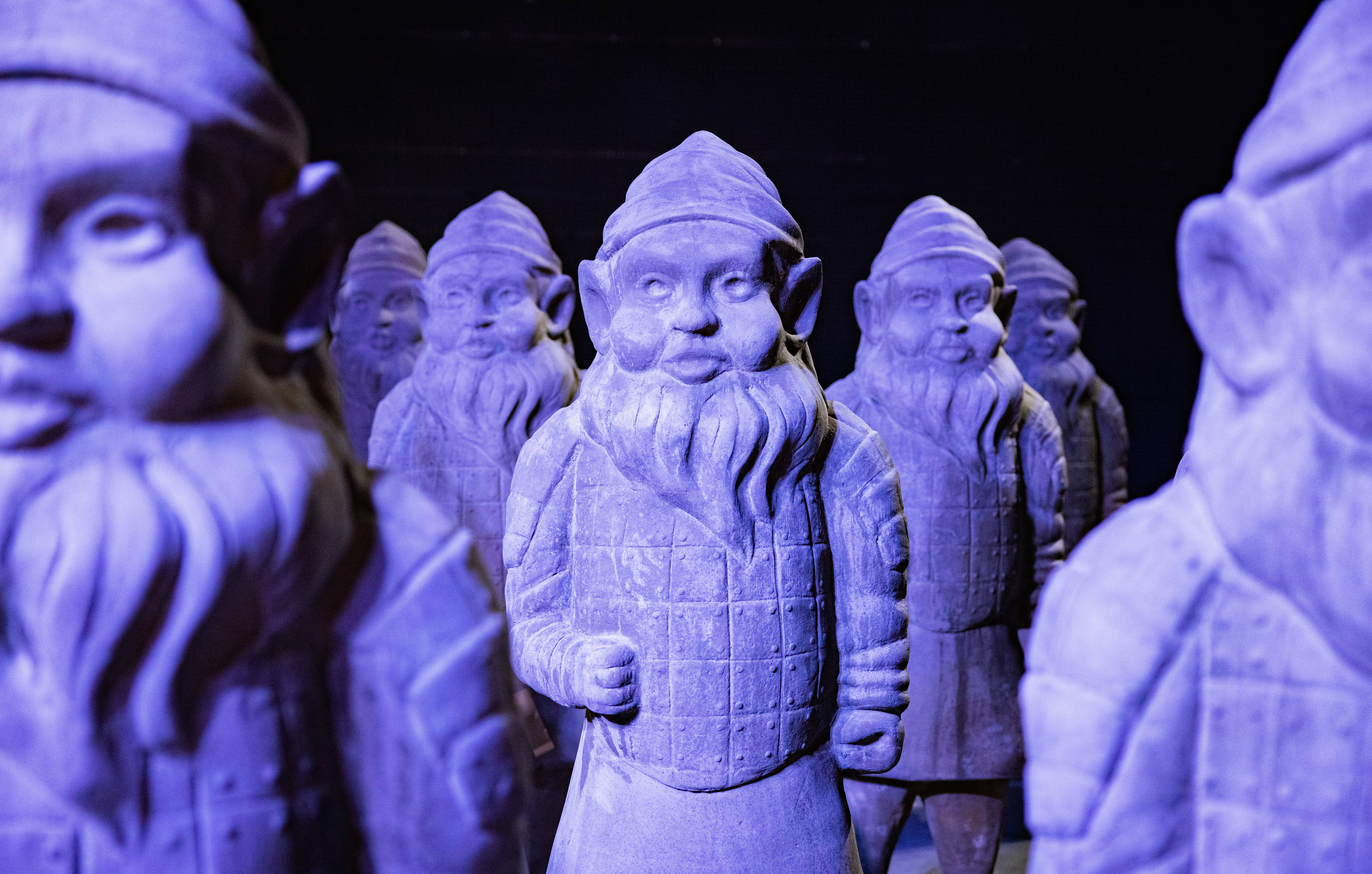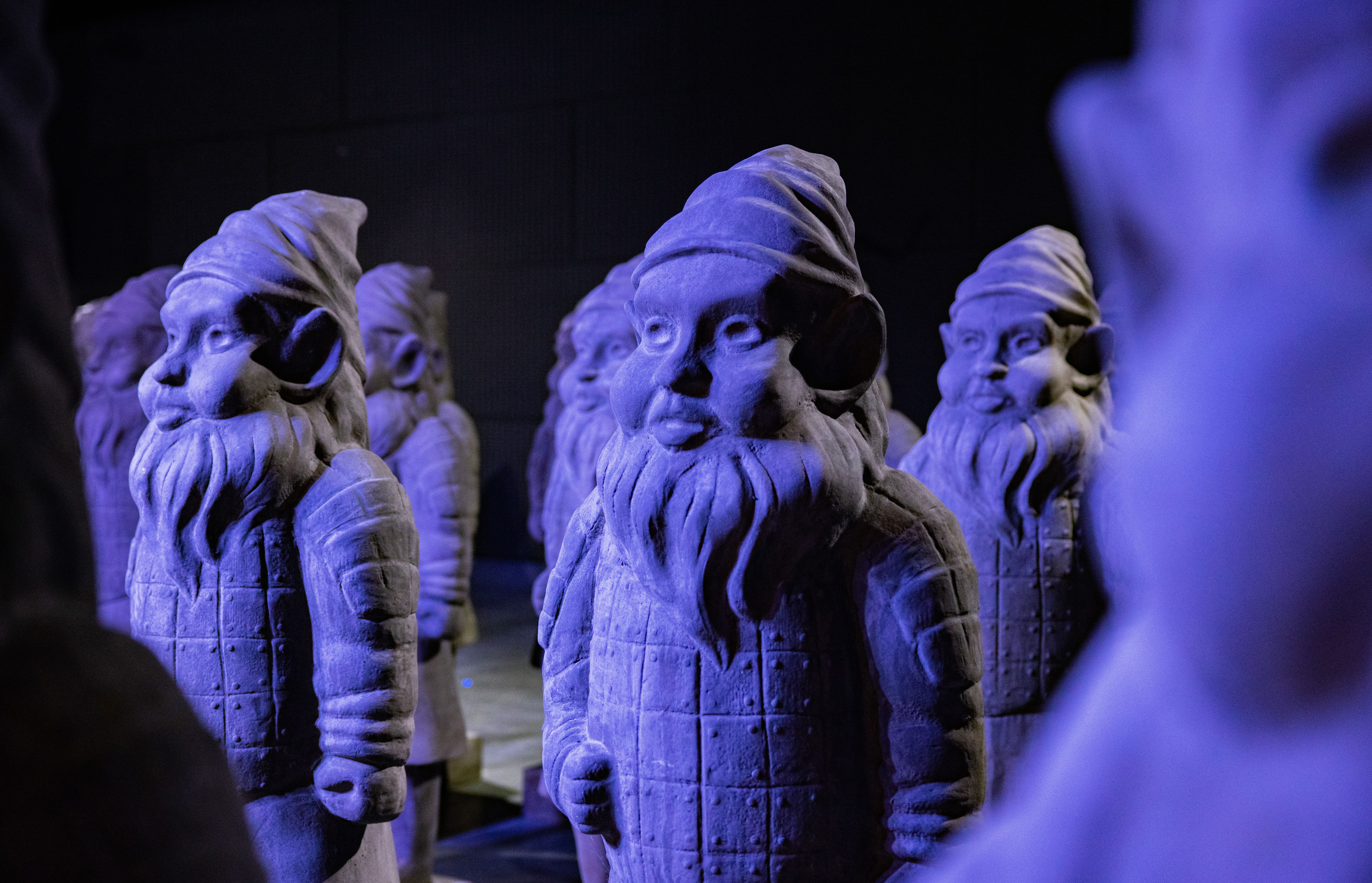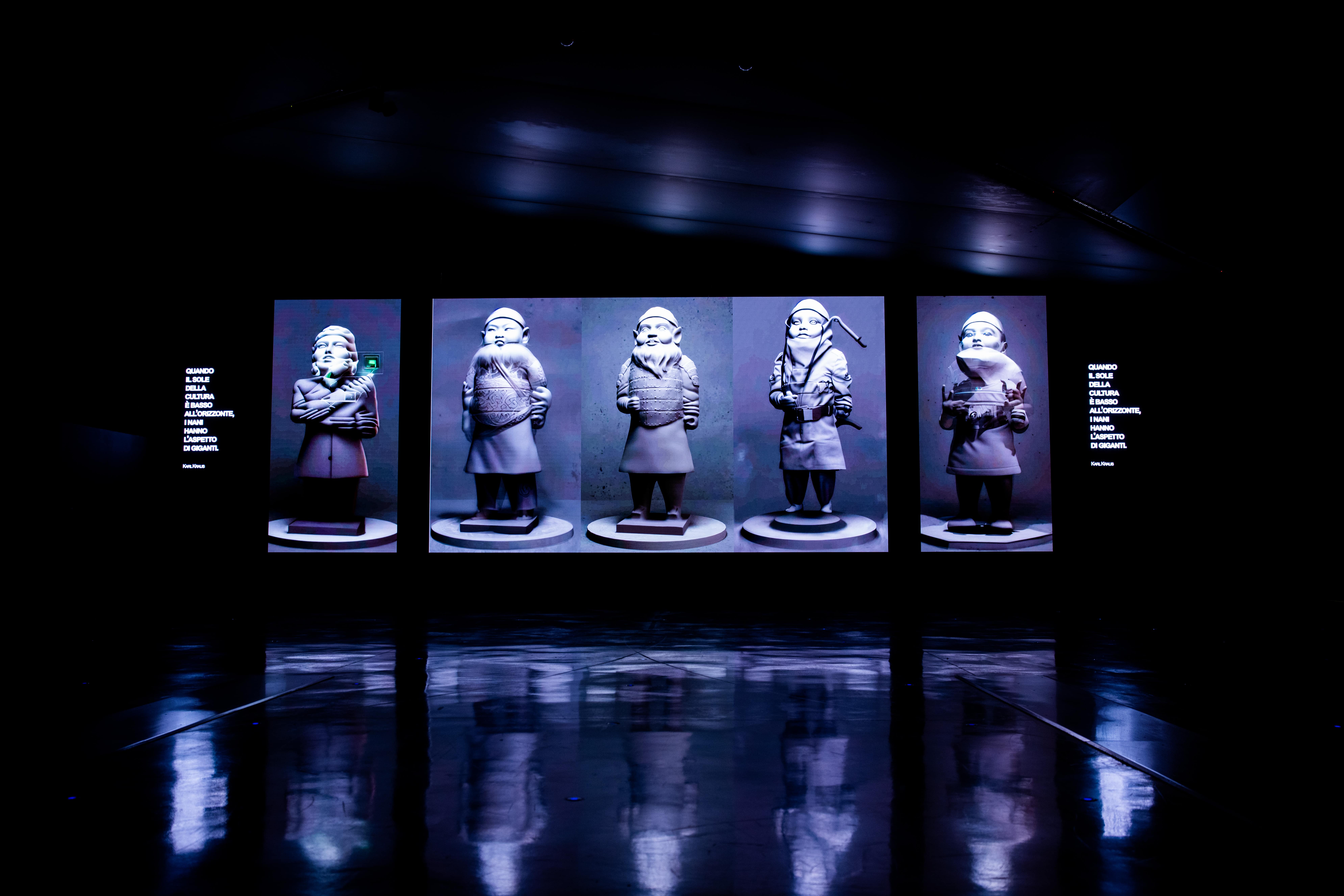 Il progetto di Max Papeschi vuole stimolare il dibattito sulle cause reali della possibile estinzione della razza umana con l’ironia tipica dell’artista. L’installazione Zwergen Dämmerung, letteralmente “il crepuscolo dei nani”, è un fermo-immagine in cui si cristallizza questo momento storico, basato su due temi principali: la minaccia della guerra e l’impoverimento culturale. L’artista lo ha visualizzato attraverso un esercito di statue alte 1,80, i cui corpi sono quelli dei fieri guerrieri di terracotta di Xi’an, mentre le teste sono di banali nani da giardino. Il fatto che il primo ritrovamento della civiltà aliena sia un esercito, è emblematico e ci racconta di un civiltà in perenne conflitto.