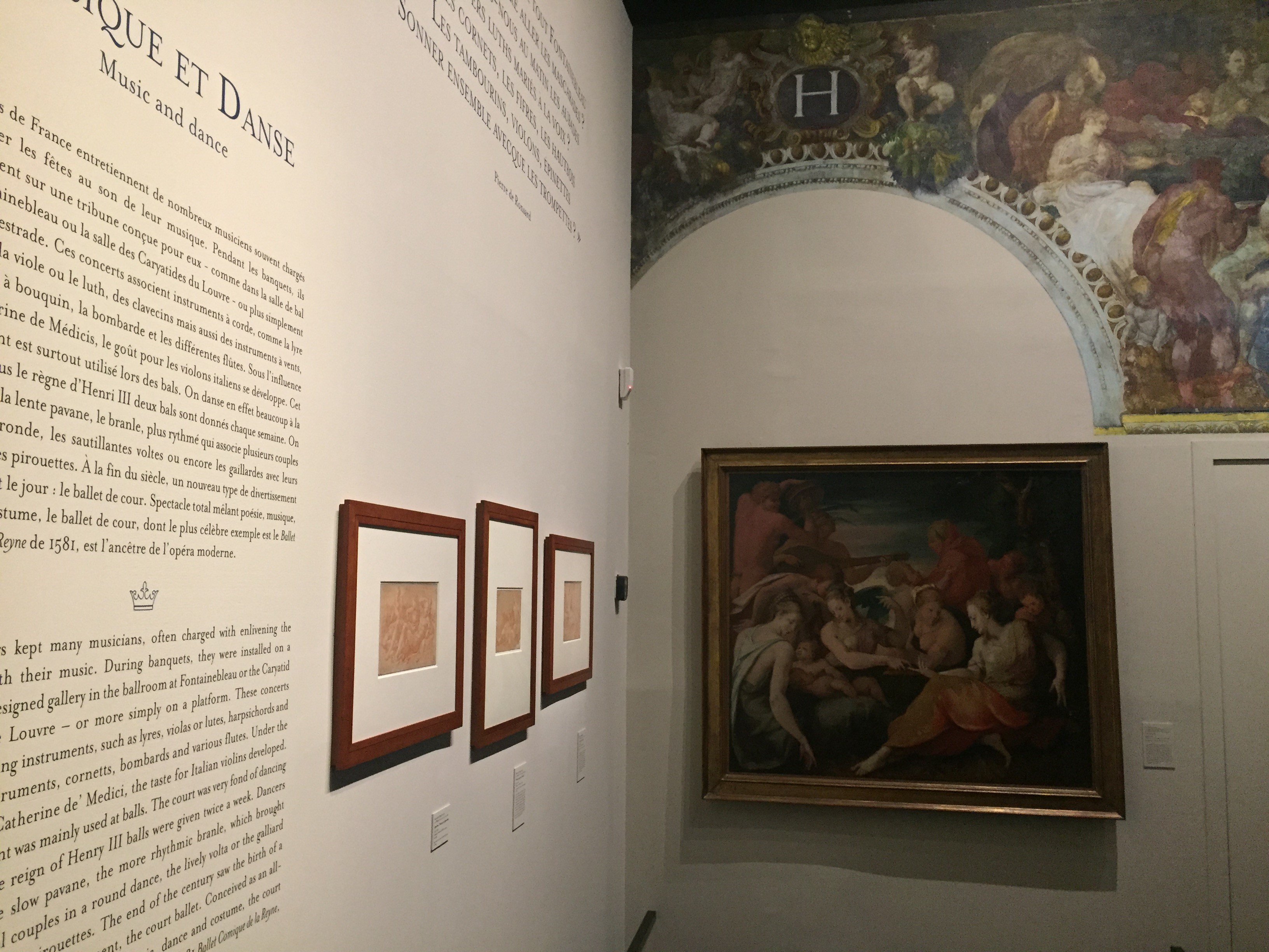 Sono aperte gratuitamente anche due mostre temporanee che rimangono aperte oltre il Festival, di cui una curata da una giovane conservatrice del castello di Fontainebleau, Oriane Beaufils. La mostra, dal titolo “L’Art de la fête à la cour des Valois” (10 aprile – 4 luglio 2022) spiega i fasti delle feste organizzate a Fontainebleau o a Bayonne dalla nostra Caterina de’ Medici. Grandi pannelli colorati, grandi riproduzioni di disegni di sontuose feste all’aperto, di battaglie navali e belle armature per giochi in onore del re sono le poche frasi che potrebbero riassumere questa mostra elegante e didattica.