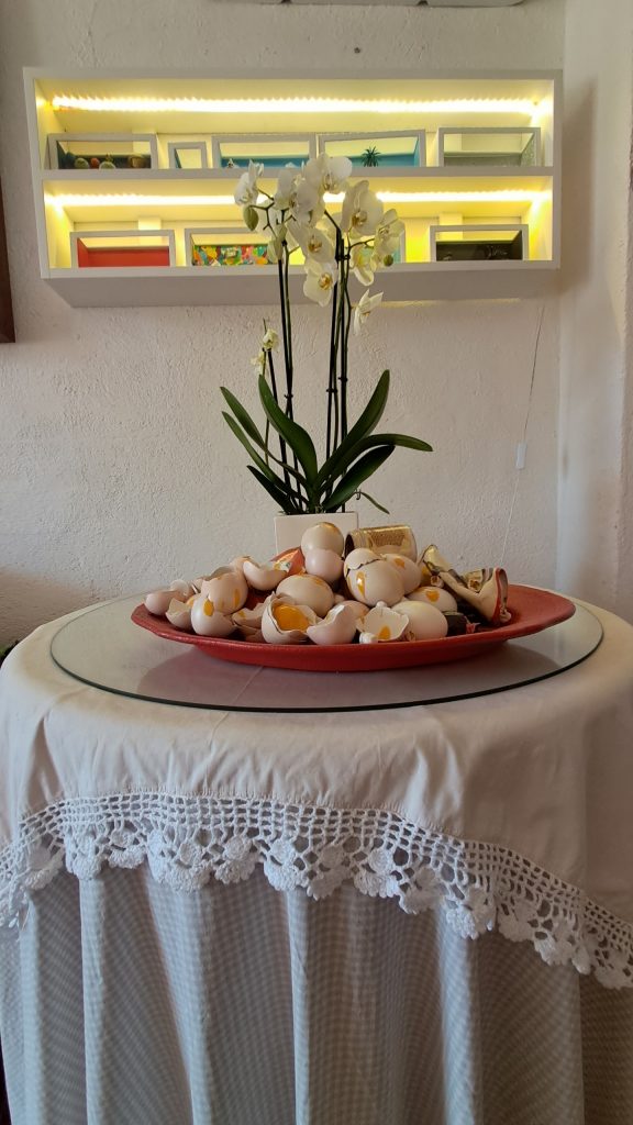 «Mio marito dice che abbiamo la camera da letto più affollata d’Italia. Se oso dirlo io, suona diverso! Diciamo che faccio subire alla mia famiglia la passione per l’arte! Mia figlia ha bevuto arte e biberon fin da neonata. Sono convinta che da grande farà la ragioniera dell’INAIL. Le relazioni sono tutto, visto che il progetto che ho ideato qui in Sardegna dal 2017 si chiama “Contaminazione di energie”, per uno scambio proficuo tra la Sardegna e il “Continente” (come i sardi chiamano il resto d’Italia), ma anche tra la Costa Smeralda e l’interno della Sardegna. Quando un visitatore ascolta le nostre visite guidate nelle stanze di casa, scatta subito l’empatia».