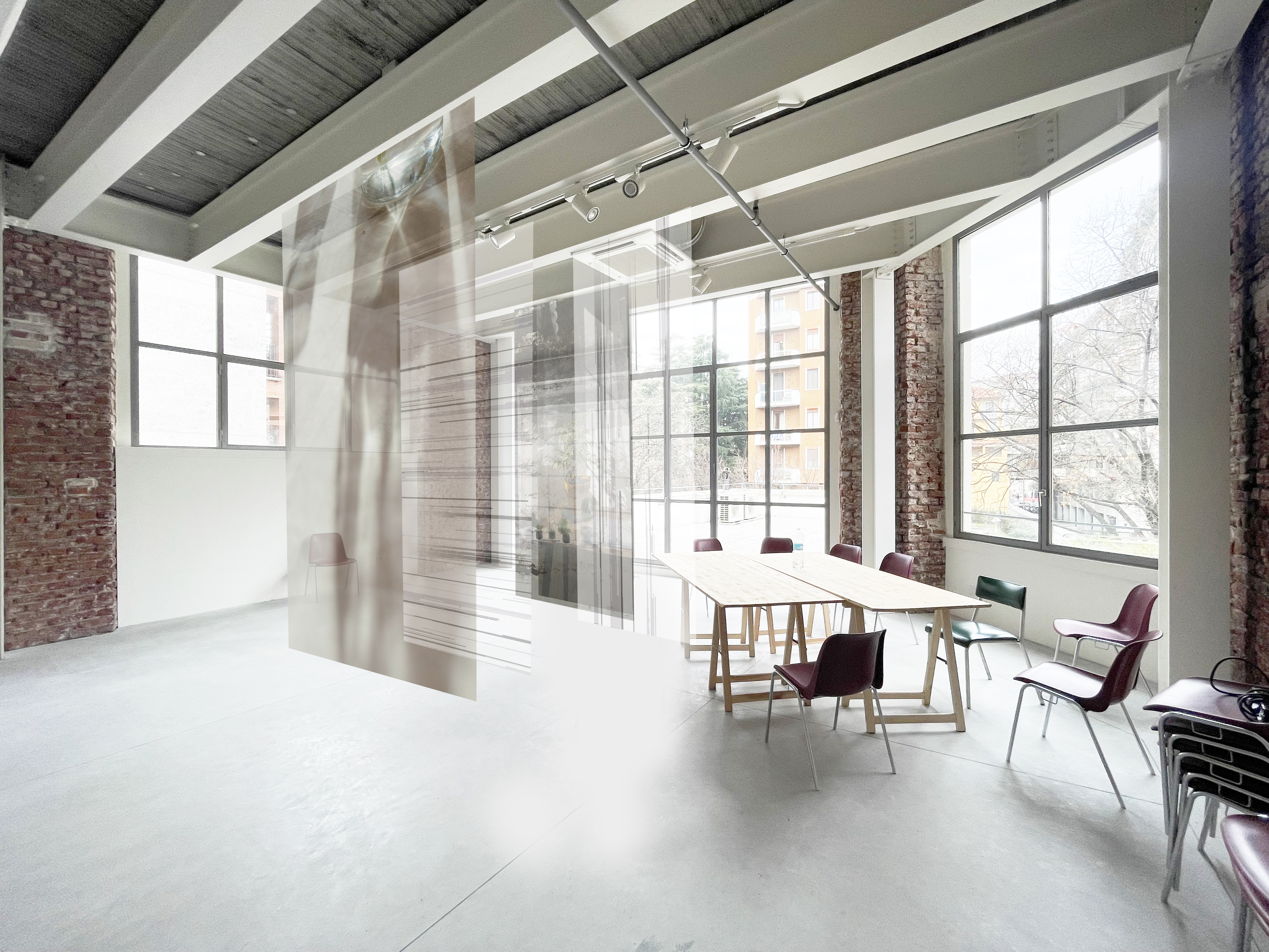 L’atelier intitolato a Hidetoshi Nagasawa, leggendario artista giapponese naturalizzato italiano, ospita un’installazione di Margherita Morgantin, che riflette sul tempo sospeso e i paesaggi immaginari che si rivelano nei momenti di transizione. Nell’interazione tra corpo e infrastruttura, tra viaggio e pausa, l’artista costruisce una narrazione poetica che trasforma lo spazio fisico in un luogo di meditazione collettiva.