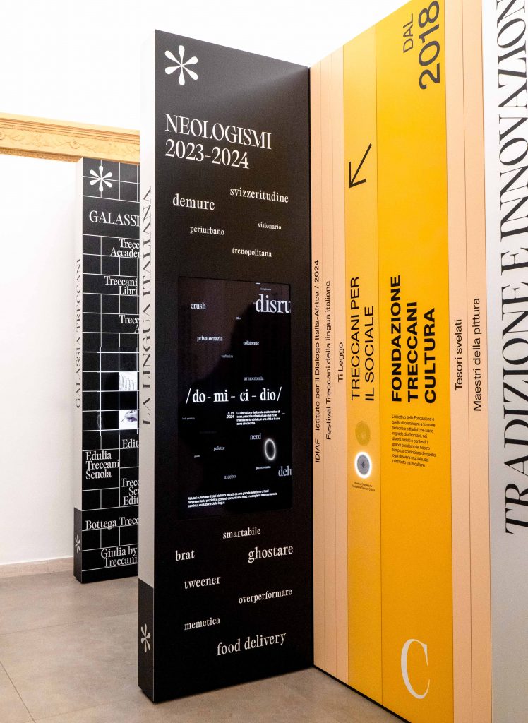 Palazzo Treccani rappresenta quindi un dialogo multiforme e corale tra persone, istituzioni, enti e comunità attraverso spazi fisici e digitali interattivi. Si tratta di un progetto in evoluzione, destinato ad ampliarsi con nuovi spazi che offriranno prospettive sempre diverse sull’universo Treccani; nella sua forma finale, si comporrà di sei ambienti modulari, pensati per essere presentati e replicati in diverse sedi espositive, in Italia e all’estero.