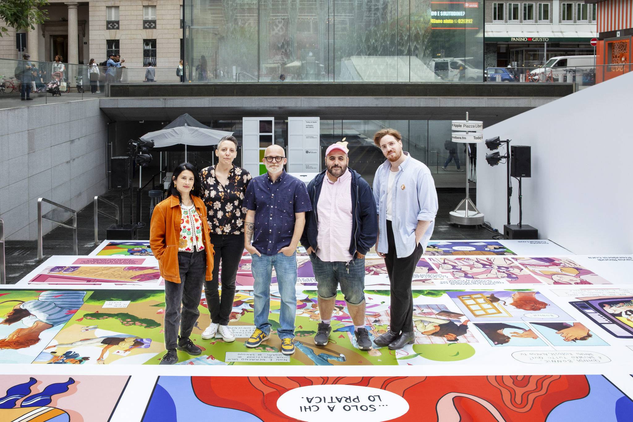 Gli illustratori hanno raccontato il proprio concetto di famiglia con il proprio stile. Attingendo al linguaggio del fumetto hanno condiviso visioni e riflessioni personali, offrendo a chiunque si trovi nei dintorni di Piazza Liberty di immergersi in immagini e parole su cui camminare, sedersi, chiacchierare e identificarsi.