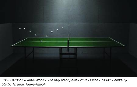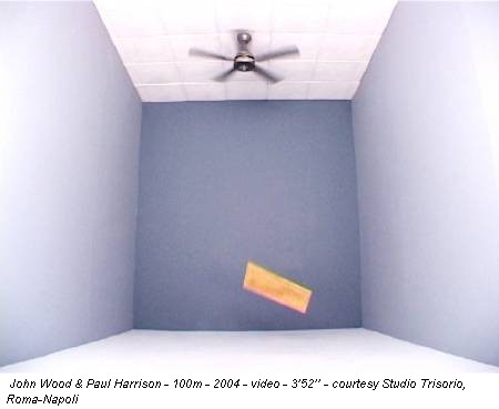 Sembra d’essere finiti nella stanza bianca delle Quattro immagini uguali (1969) di Giulio Paolini, con l’unica differenza che ora, nella stanza bianca, c’è uno spettatore seduto su una sedia che osserva un’altra stanza bianca, visibile da uno schermo. Il white cube di John Wood (Hong Kong, 1969; vive a Bristol) & Paul Harrison (Wolverhampton, 1966; vive a Londra, Bristol e Wolverhampton) è proiettato per la prima volta nello Studio Trisorio a Roma e contemporaneamente negli spazi di Napoli, proponendo principalmente video-istallazioni, tra cui Twenty six drawing and falling things per la Capitale e The Only Other Point per la città partenopea.