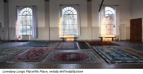 La mission dell’installazione PLACE/NO PLACE è ribadire che le parole hanno un peso così come la scrittura, e la ‘pelle’ di ogni tappeto trattiene ‘brandelli’ di comunicazione. «Una comunicazione egocentrica – sostiene Marina Mizzau – che non tiene conto dell’altro in quanto rigidamente legata ad un codice semantico, a uno schema di riferimento, a un ruolo». Tuttavia la nozione di comunicazione non è sinonimo di ambiguità quando si elegge a denominatore comune della medesima la relazione nella quale l’uno è per l’Altro nei termini del rispetto delle identità:vera e leale comunicazione è attenzione al senso delle parole, è capacità d’interpretazione, analisi e uso del messaggio come manifestazione di comunanza proprio dell’uno con l’Altro.