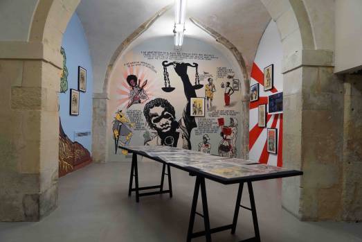 Nel 1982 il Black Panther Party si scioglie, ma l’arte di Emory Douglas vive ancora oggi grazie ad un copioso corpus di poster, fumetti, collage e fotomontaggi. Lo scopo sociale/divulgativo, prima ancora che estetico/artistico, è la chiave delle sue opere in cui l’autorialità – come afferma l’artista stesso – è negata a favore della realizzazione di un’opera collettiva, patrimonio della comunità nera. E come si addice ad un’arte collettiva, a distanza di decenni dai primi volantini che invitavano ad unirsi alla lotta, la comunità artistica modicana è stata chiamata a raccolta per contribuire alla realizzazione di alcuni murales visibili all’interno della mostra.