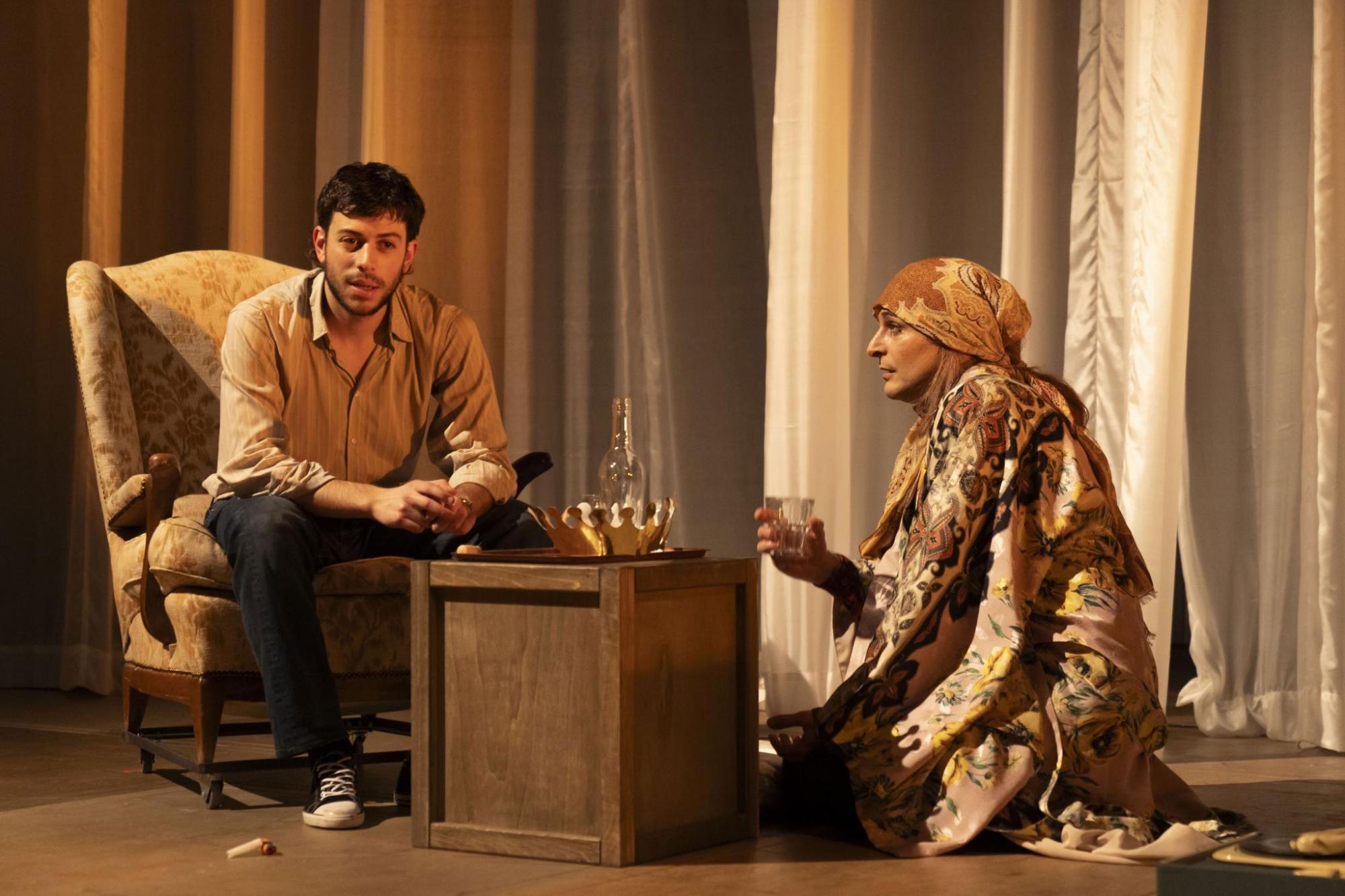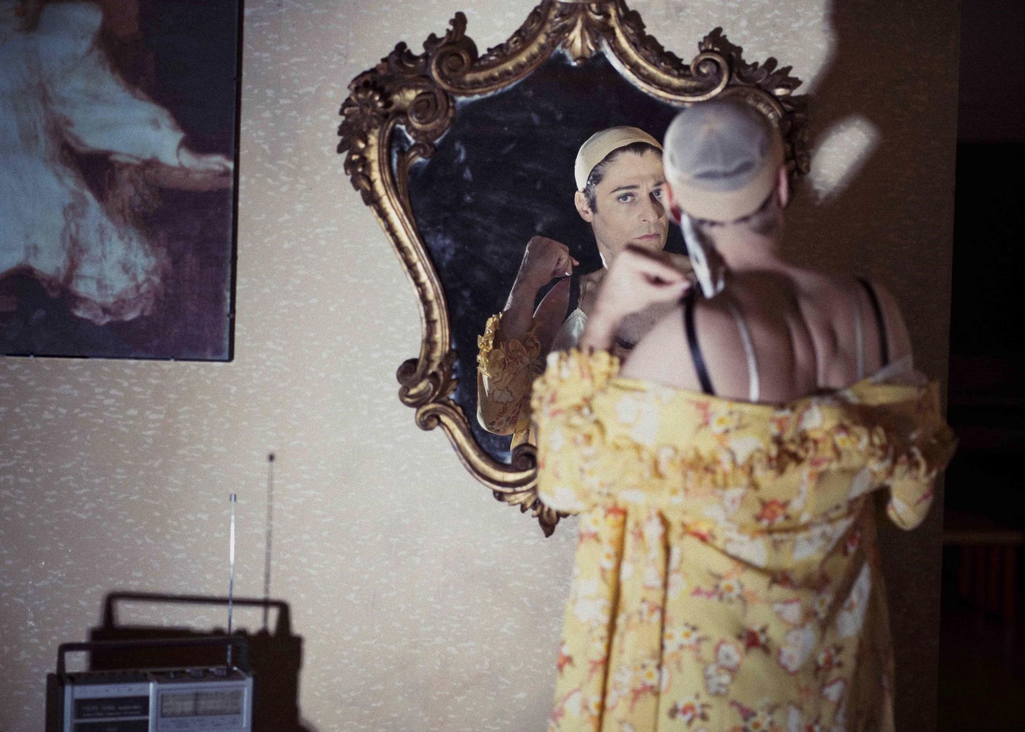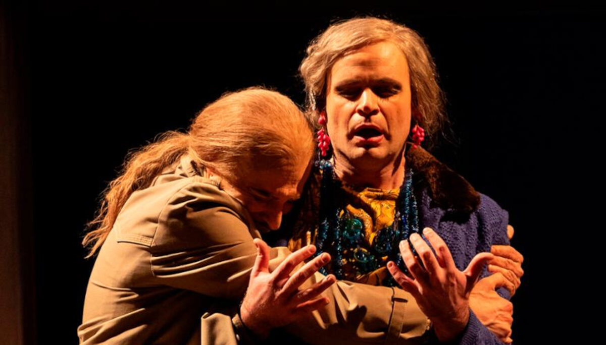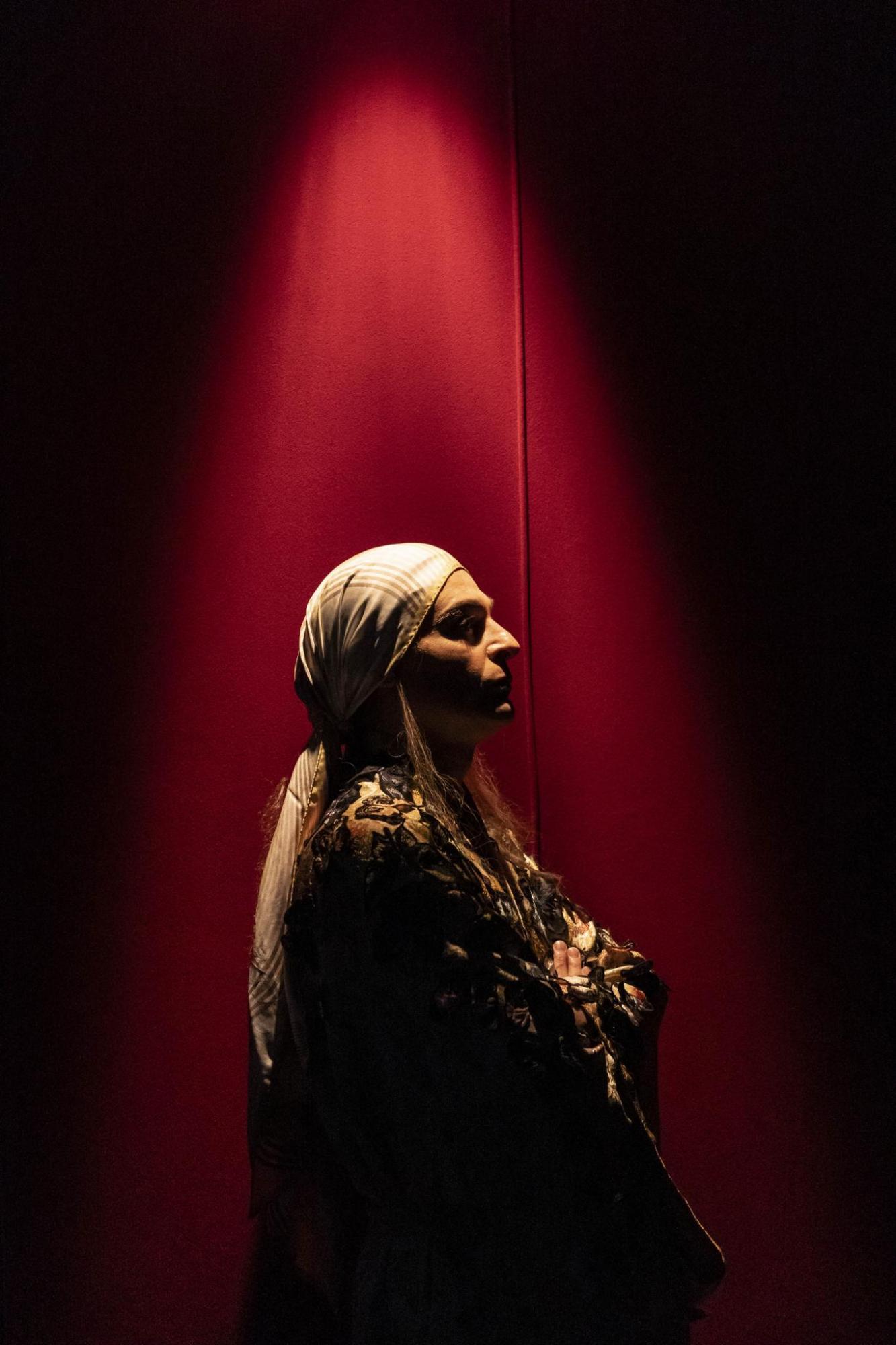 Il paesaggio umano e la polifonia di voci di questo melò dalla prosa lirica e avvolgente, che si apre e si dipana sul palcoscenico fino a contagiarci nel coinvolgimento emotivo e degli eventi, è reso da una recitazione vivace e puntuale con i bravissimi attori – Michele Dell’Utri, Diana Manea, Daniele Cavone Felicioni, e Giulia Trivero – impegnati in più ruoli entrando e uscendo dai personaggi, descrivendo luoghi, pensieri e umori, narrando in prima e in terza persona, come a scrutarsi da fuori. Mancava, a Lino Guanciale, calarsi in un ruolo così sfaccettato e complesso come quello en travesti della Fata (a parte un siparietto in La resistibile ascesa di Arturo Ui di Brecht, regia di Longhi, dove, tipo Lili Marlène, cantava in calze a rete). Attore di razza qual è, elude la trappola della facile macchietta, restituendoci una creatura viscerale, delicata, sensibile e guerriera, dal cuore puro, colorando, tra le sue vestaglie luccicanti e tovaglie ricamate, una gamma di sentimenti mutevoli che sfumano dalla malinconica all’ironia, dallo struggimento alla fierezza, accennando fragilità, ferite, vitalità.