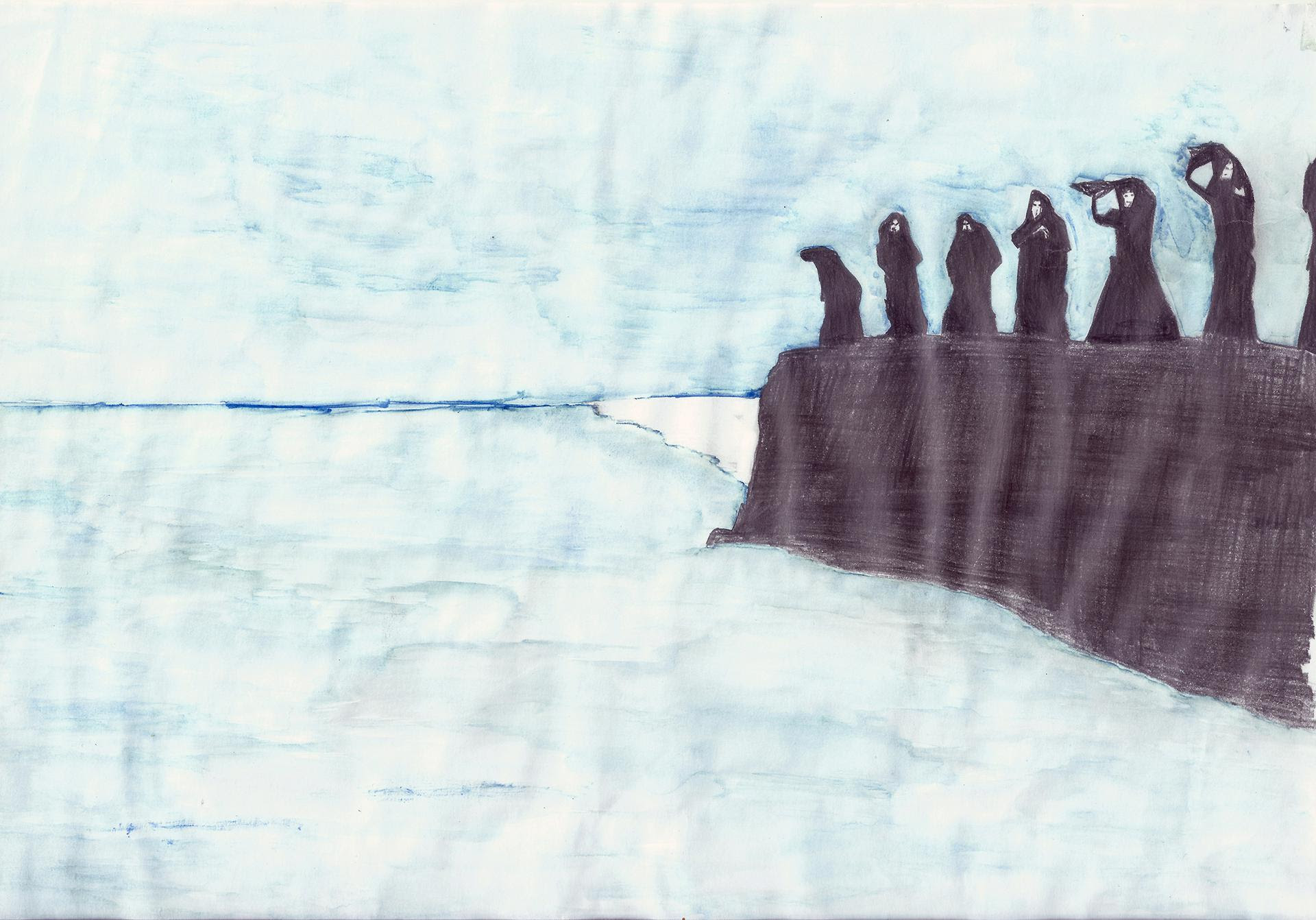 13 performers professioniste e non, vestite a lutto e di spalle al pubblico, impegnate in un lento rituale vocalistico di grande forza ipnotica: «Una sorta di preghiera preverbale – afferma Medda – la scomposizione e destrutturazione di un pianto i cui suoni si stratificano», modulato dalle musiche composte da Claudia Ciceroni con Alessandro Olla, qui in un intervento live in collaborazione con l’Universitat Politècnica de València. Una rivisitazione in chiave contemporanea tesa ad indagare la tradizione del pianto rituale funebre nel Mediterraneo, una pratica ancora in uso in alcuni paesi che si richiama con grande forza al presente, alle questioni più urgenti dell’attualità, come quella della tragedia dei migranti e al ruolo della donna nella società.